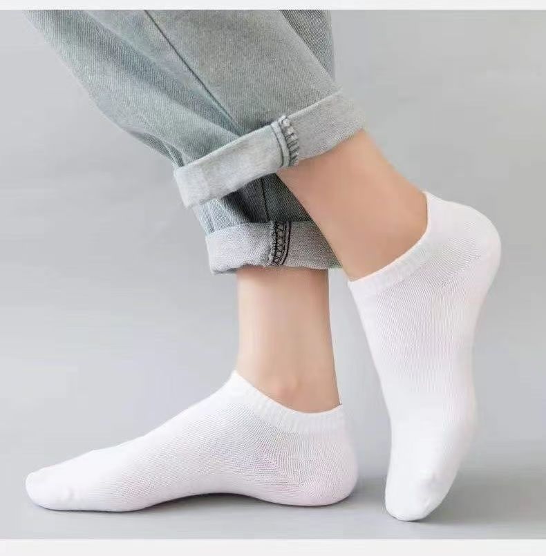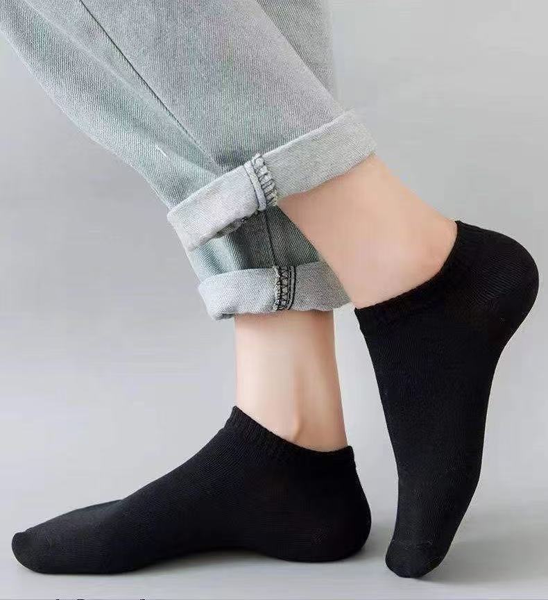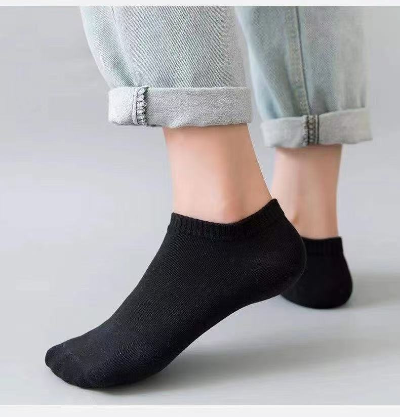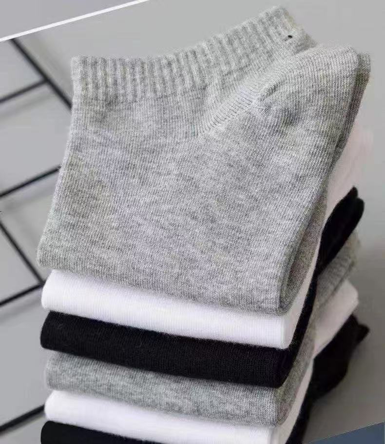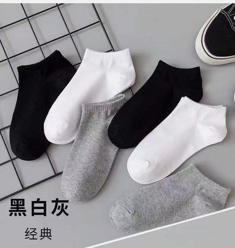 solid color black white gray boat socks-mixed