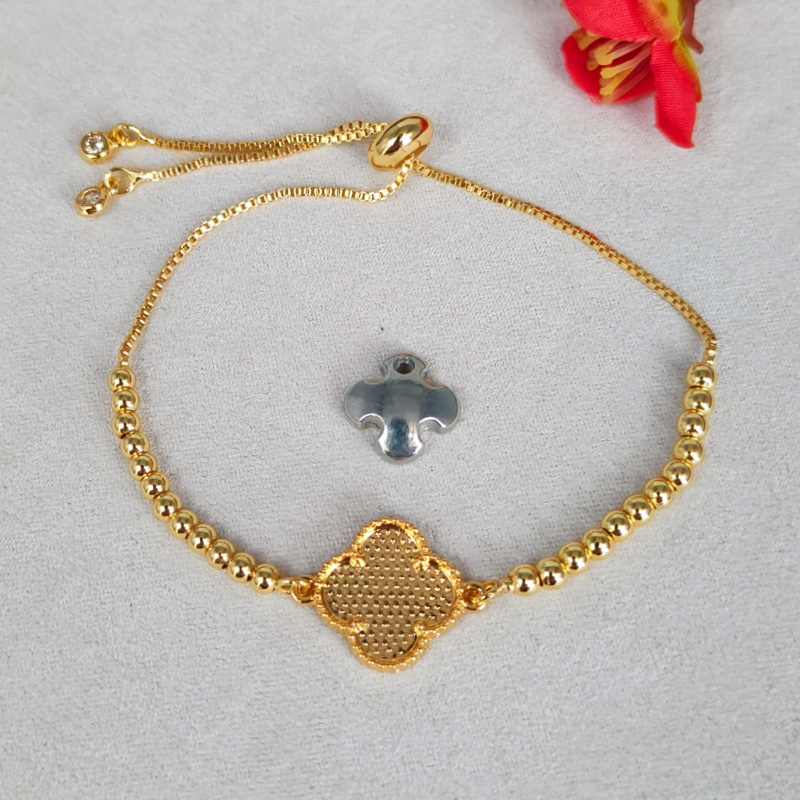four-leaf clover bead bracelet [with lid] genuine gold color-lasting