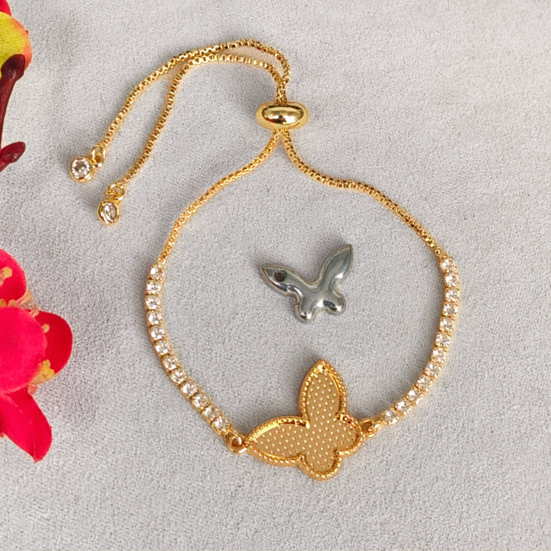 butterfly zircon bracelet [with lid] real gold color retention