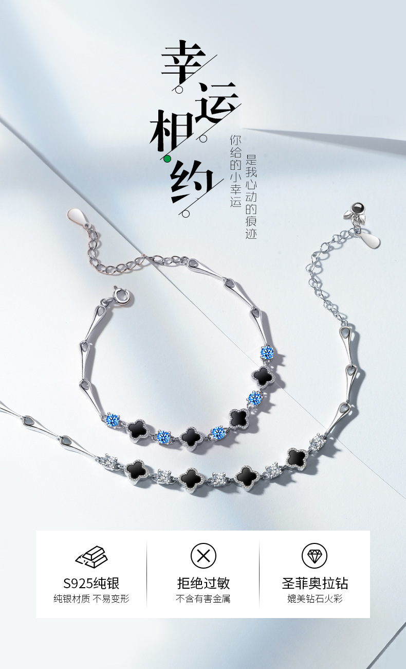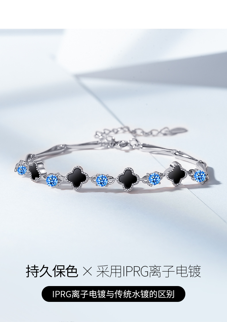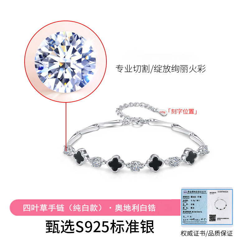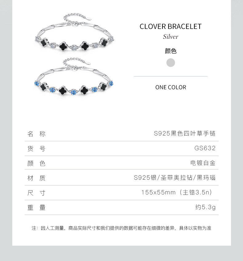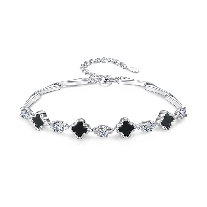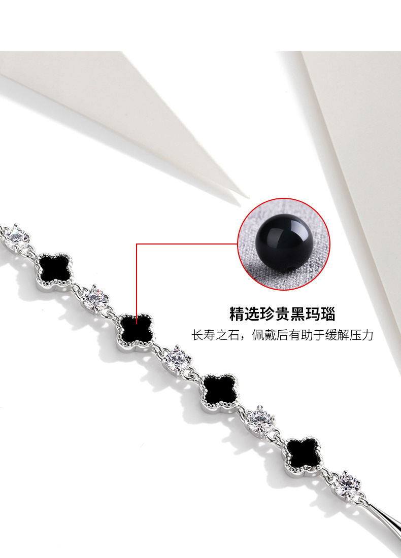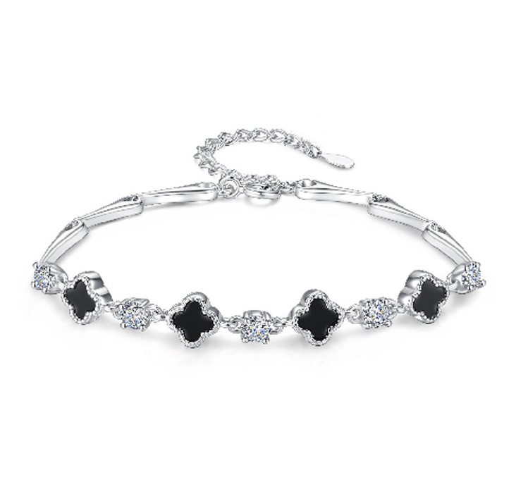 s925 white gold color-white zirconium black agate