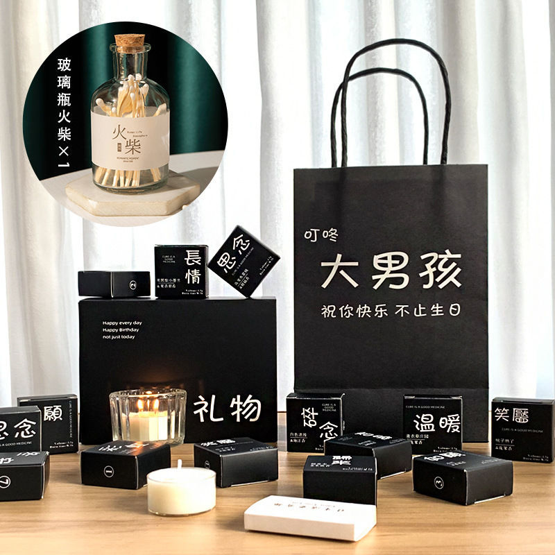 happy birthday 12 gift boxes + candlestick) + bottled matches