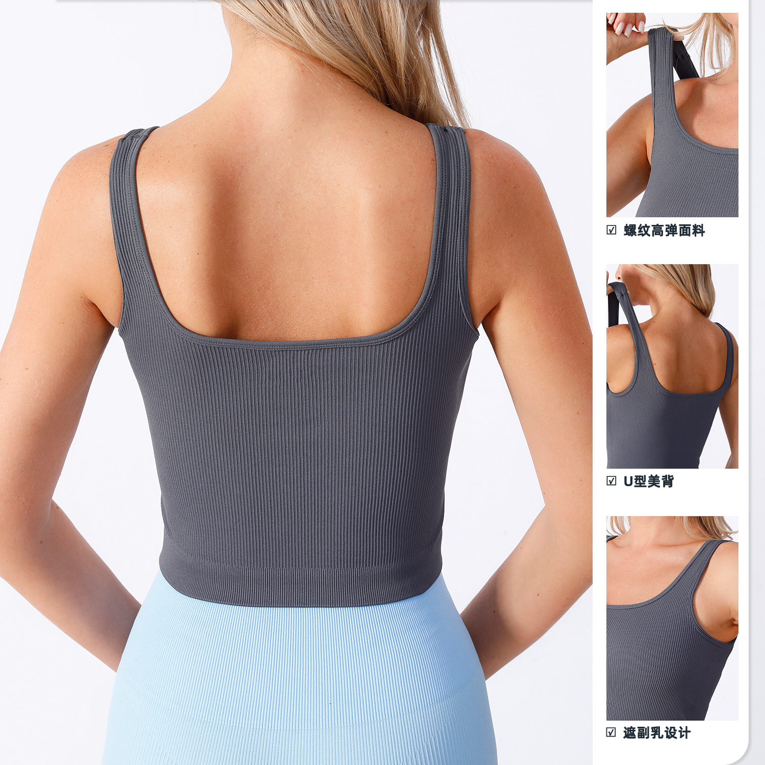 cross-border thread type u-shaped sexy beauty back sports vest women's shoulder strap yoga clothes underwear pilates workout top