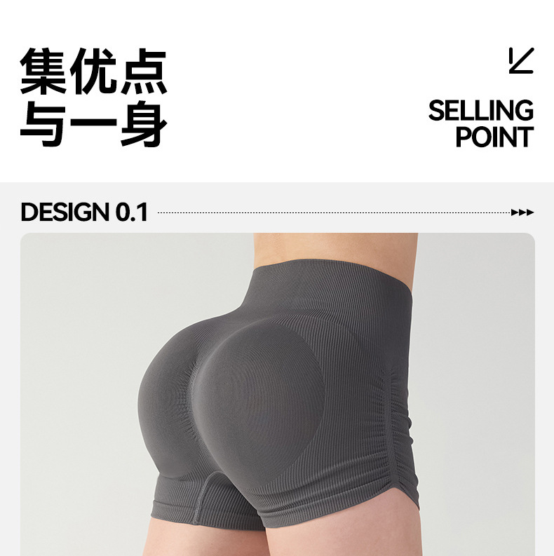 Cross-border peach fitness shorts with pleats high waist and buttock lifting training three-quarter pants showing buttocks and legs long yoga pants for women