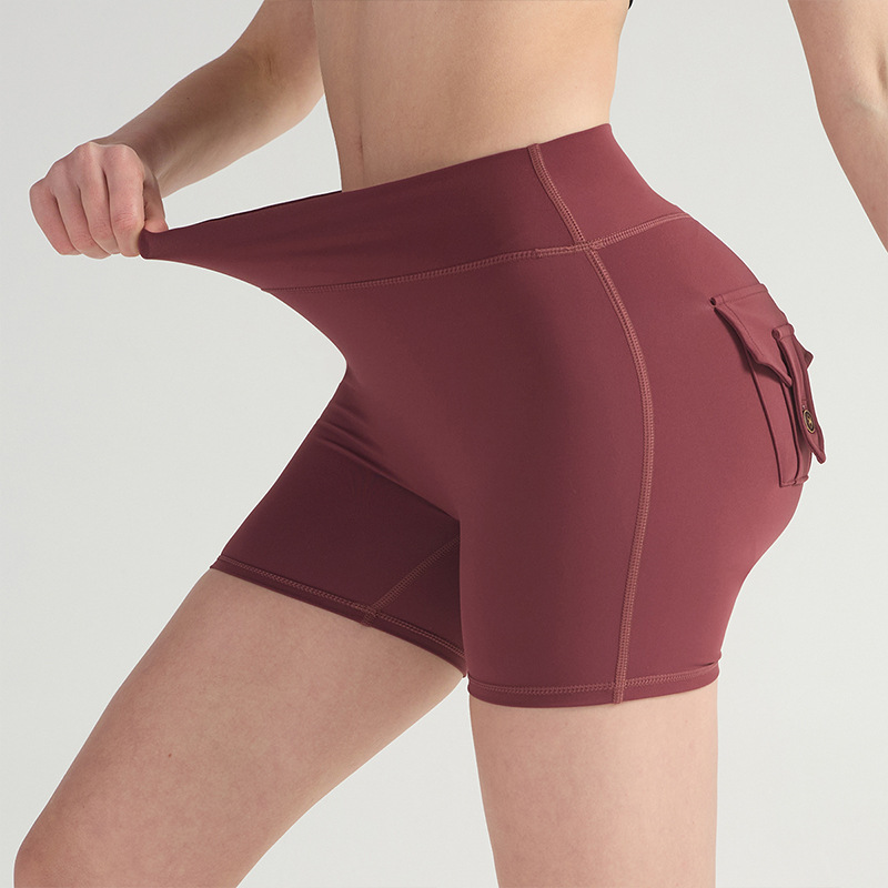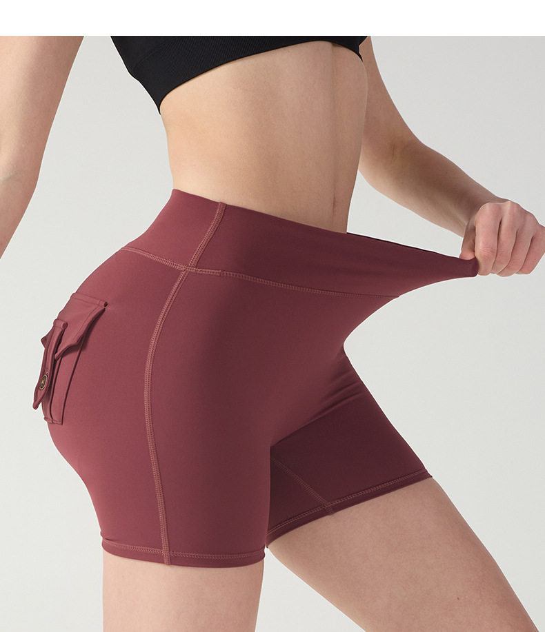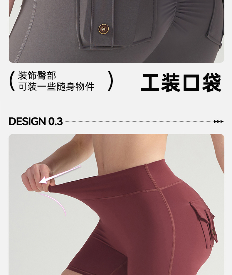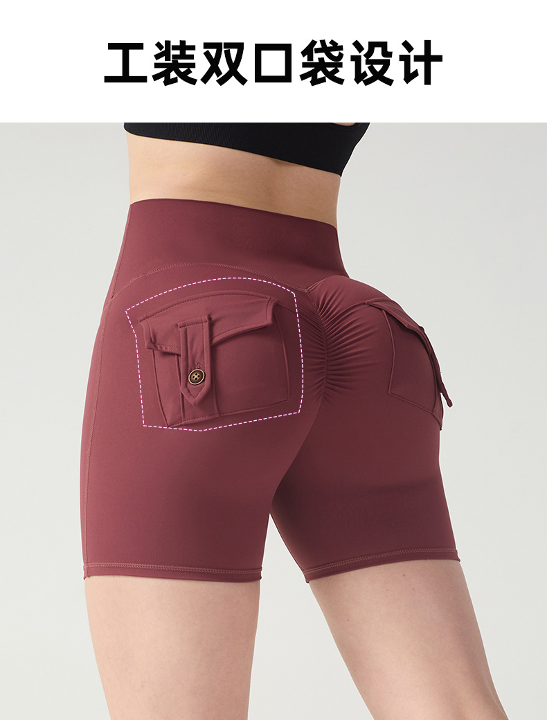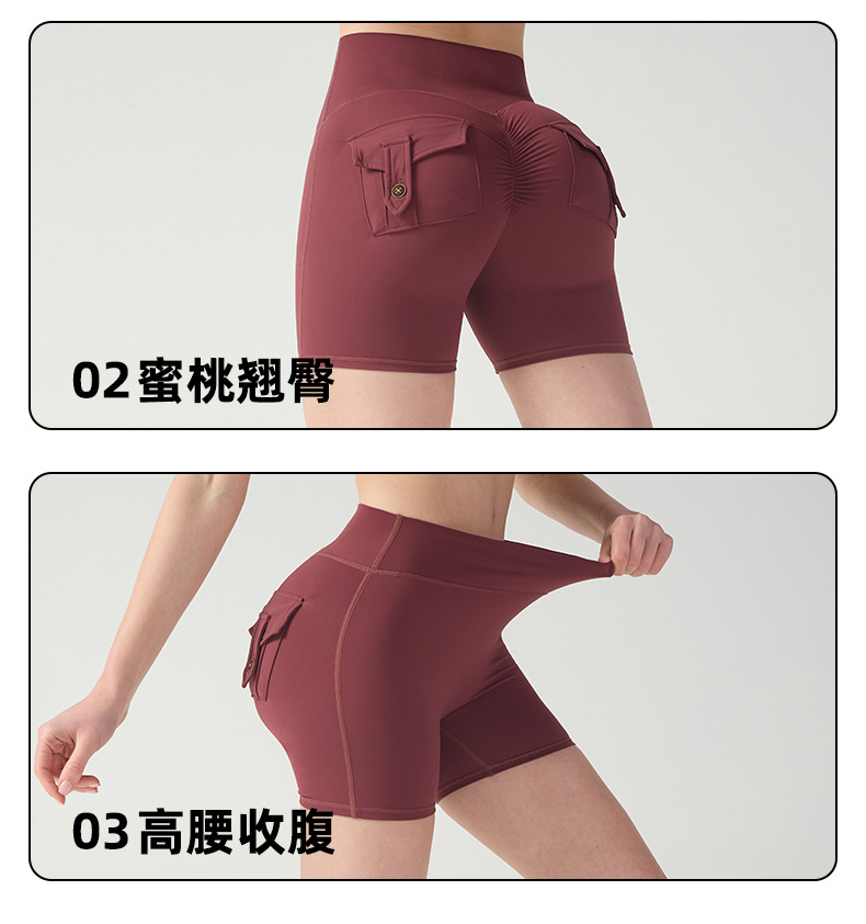 cargo pocket yoga pants high waist hip lift tight nude feel quick-drying running exercise shorts high elastic hip lifting