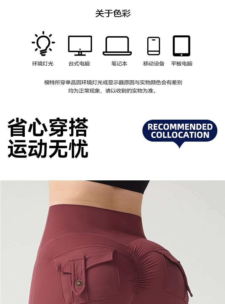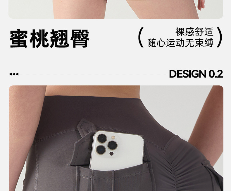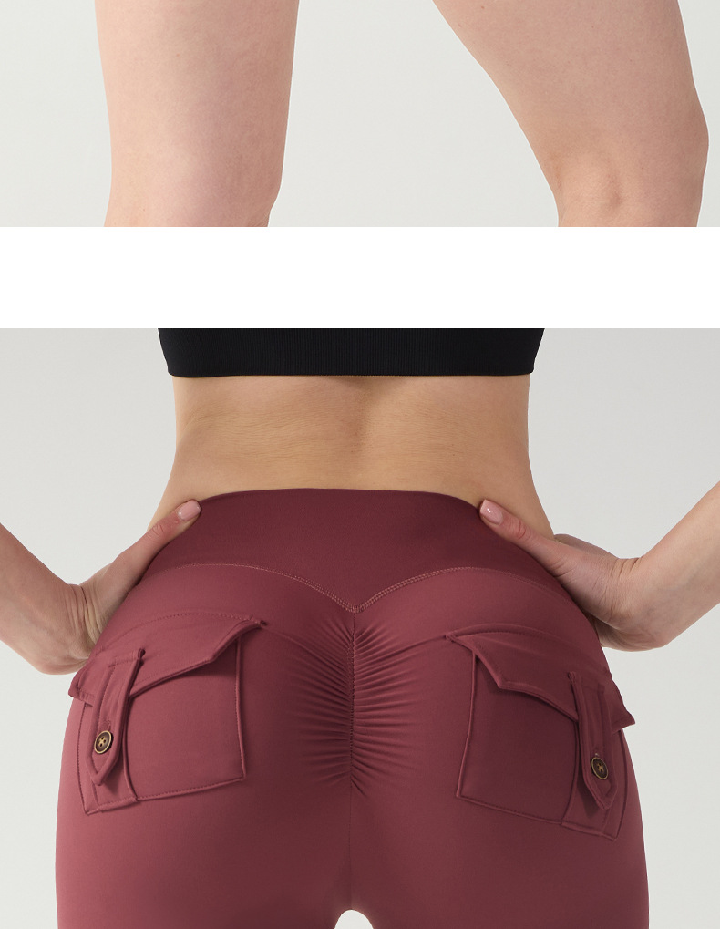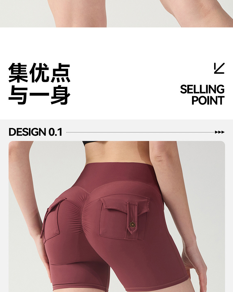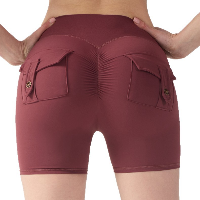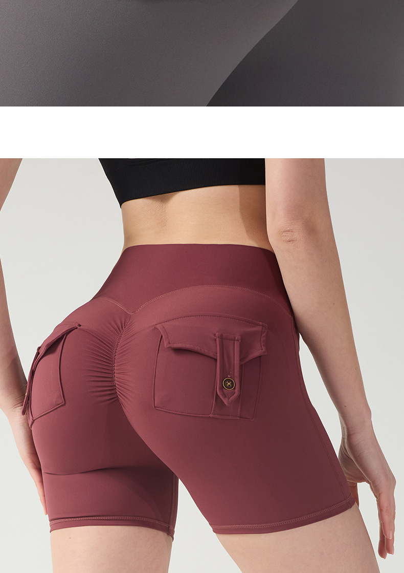 cargo pocket yoga pants high waist hip lift tight nude feel quick-drying running exercise shorts high elastic hip lifting
