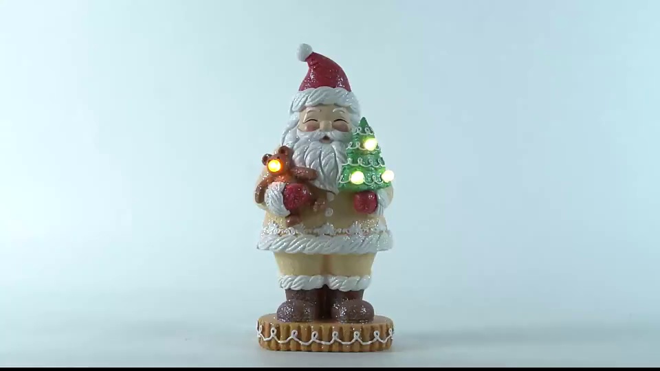 resin ginger cake ornaments santa claus statue with lights holiday party supplies decoration christmas gift desk decoration