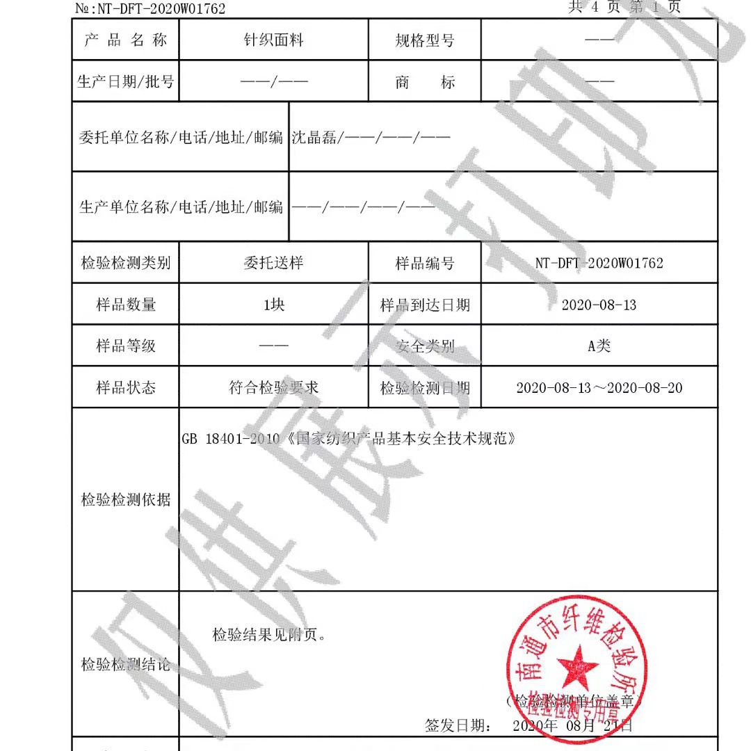 | 200 x230cm (class a knitted cotton) with test report | CN¥ 101.58 |