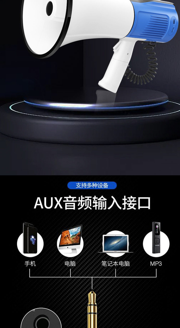 large diameter 22cm with screen display plug-in card bluetooth with hand microphone +1 lithium battery (106u type blue and white)