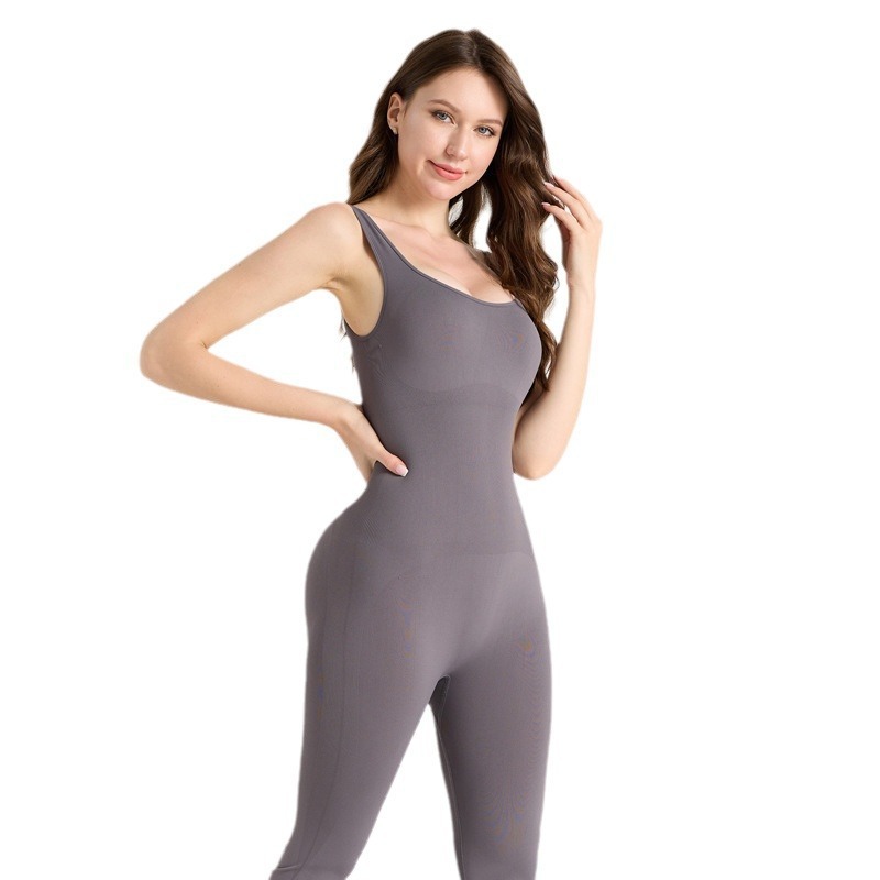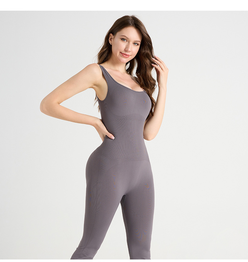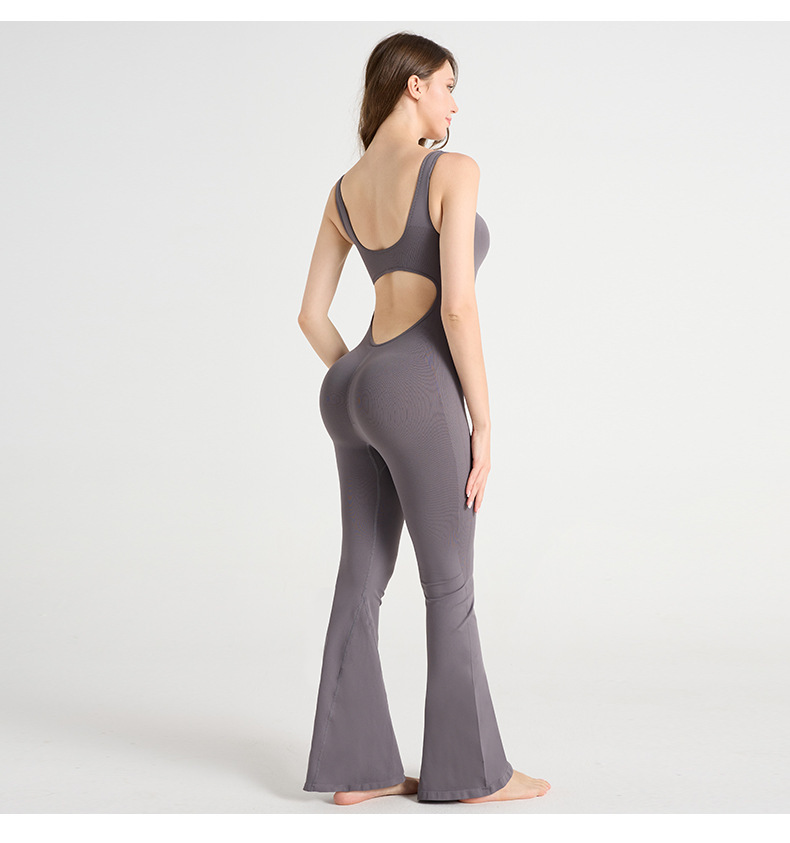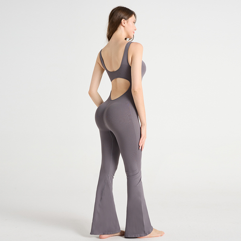Micro-flared openwork backless yoga set with strapless round neck, fitness clothing, tight-fitting sports set