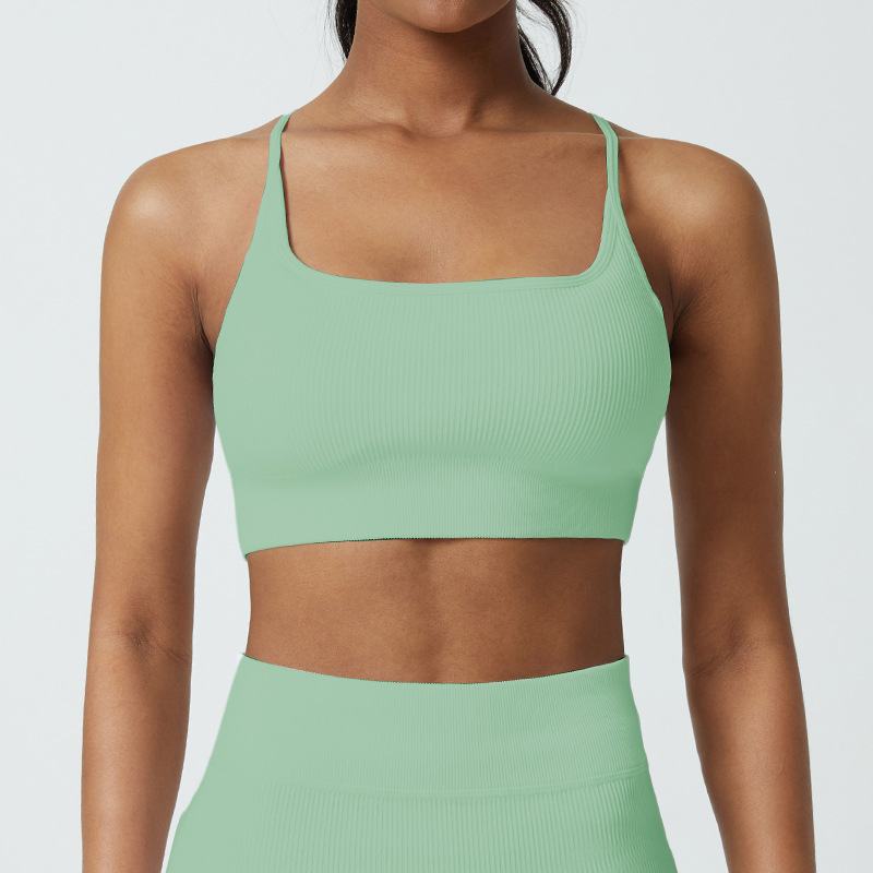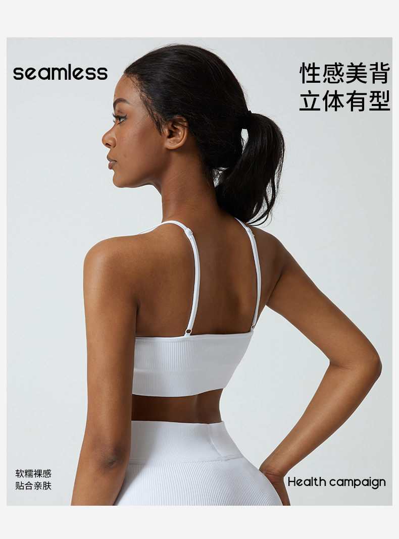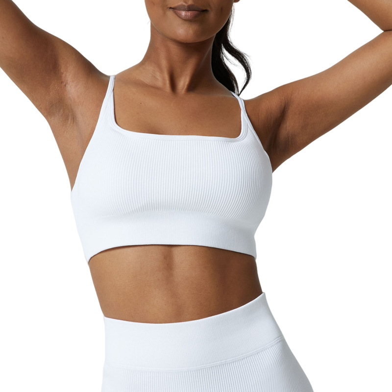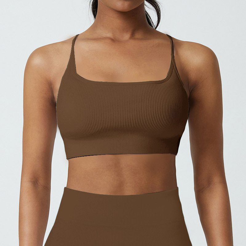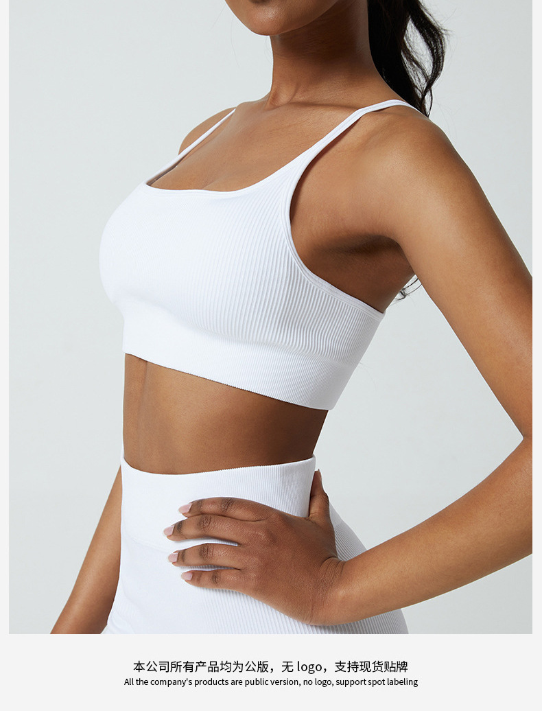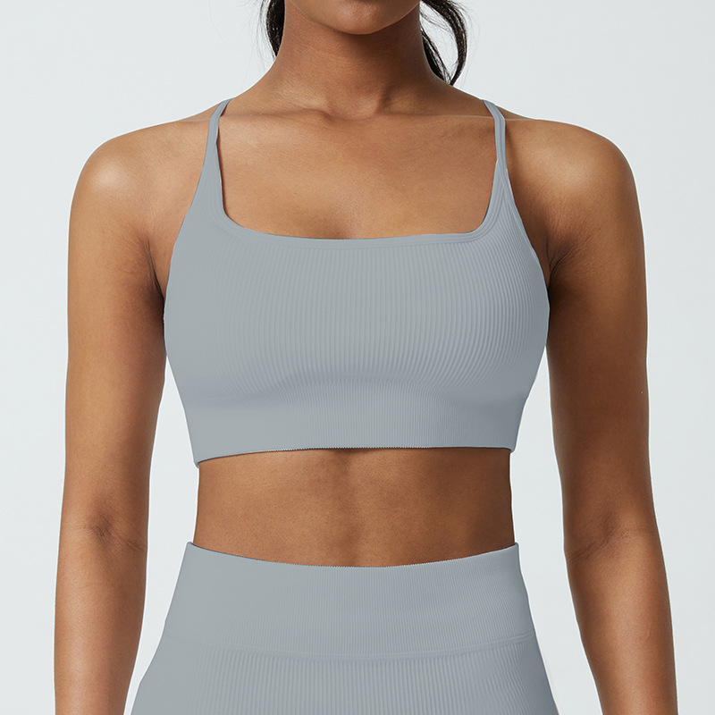 Cup-supporting ribbed yoga top, beautiful back, sports bra, summer anti-vibration bra, large chest, can be worn outside.