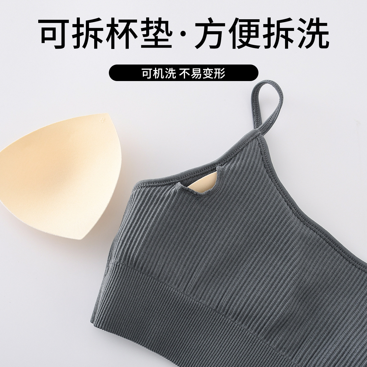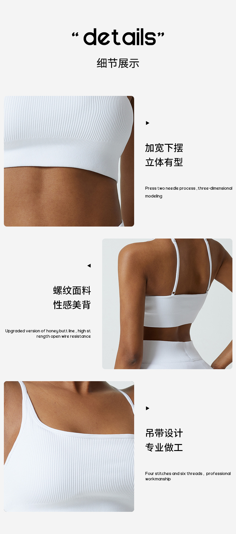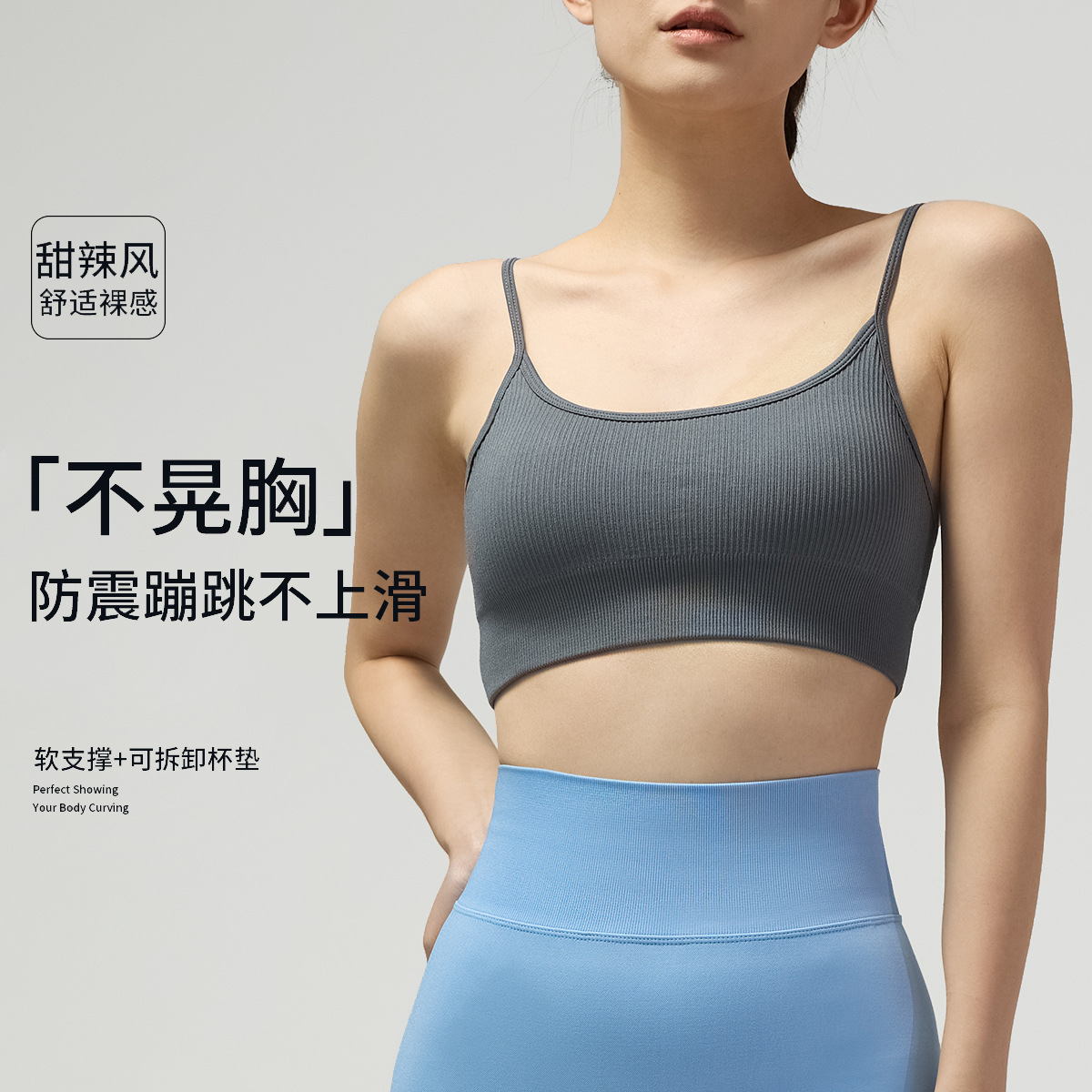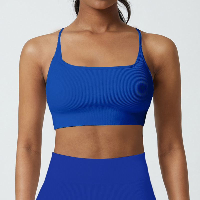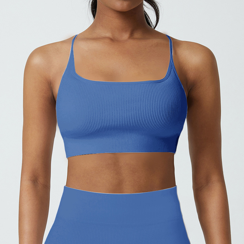 Cup-supporting ribbed yoga top, beautiful back, sports bra, summer anti-vibration bra, large chest, can be worn outside.