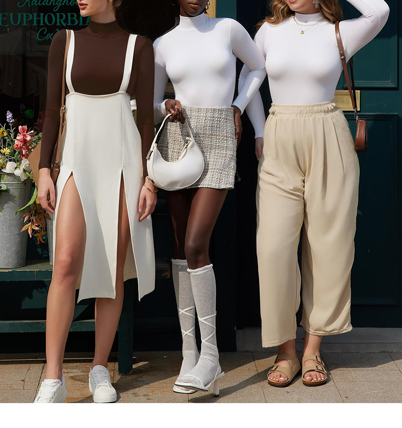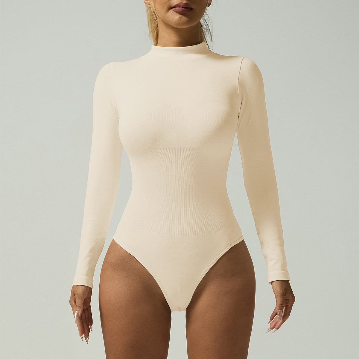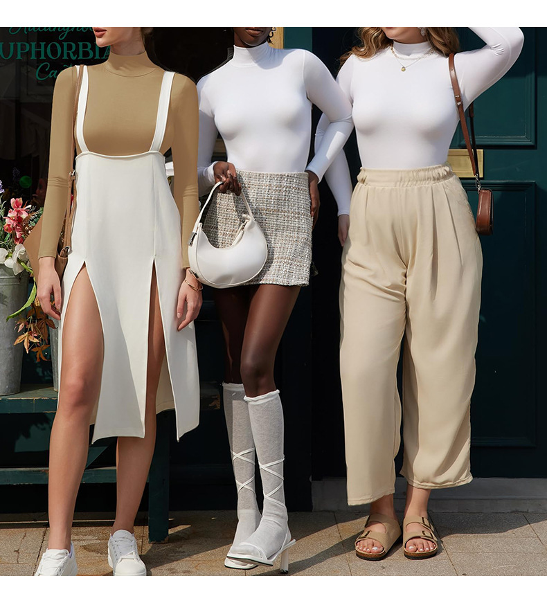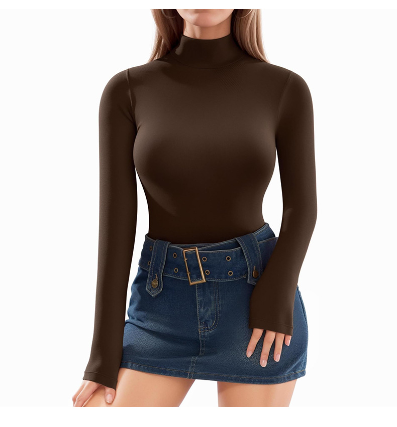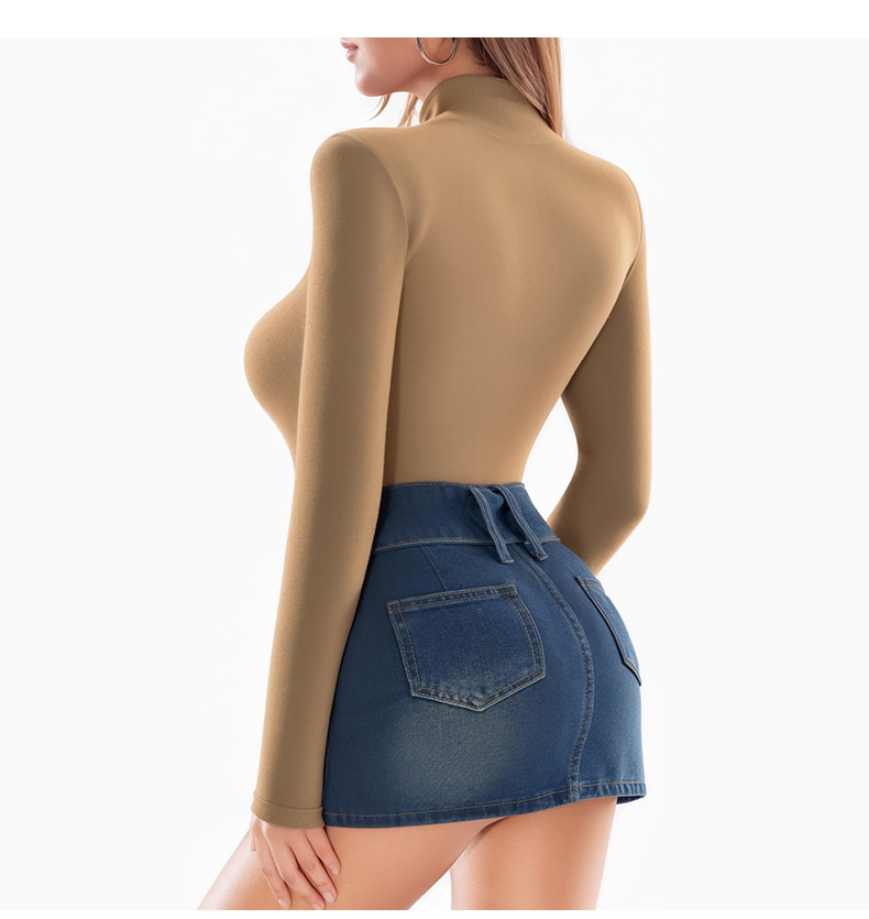 European and American autumn and winter high collar fine threaded long-sleeved triangular integrated body suit, slimming and thinning, sports and fitness yoga integrated body suit