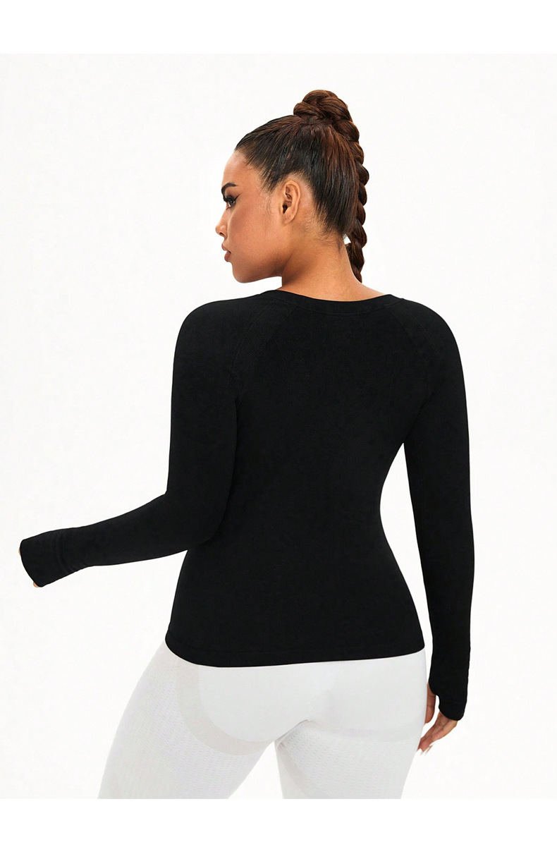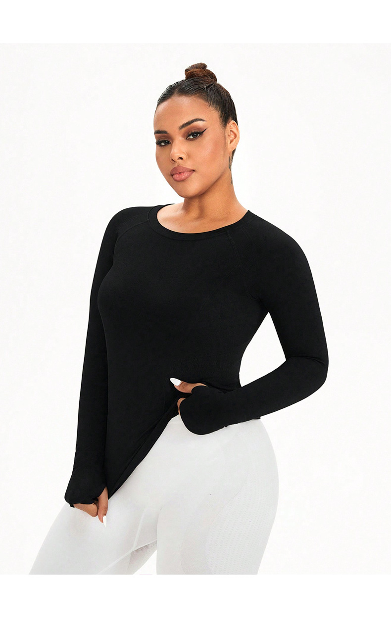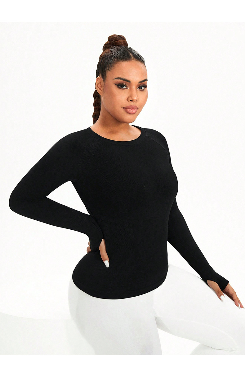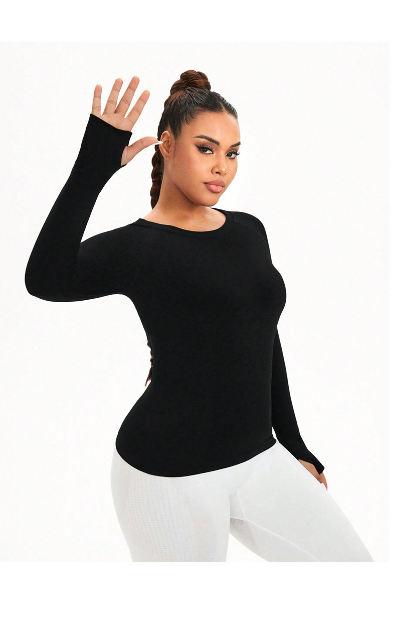 cross-border plus size yoga wear top women's solid color round neck plump girls quick-drying stretch tight training sports workout long sleeve