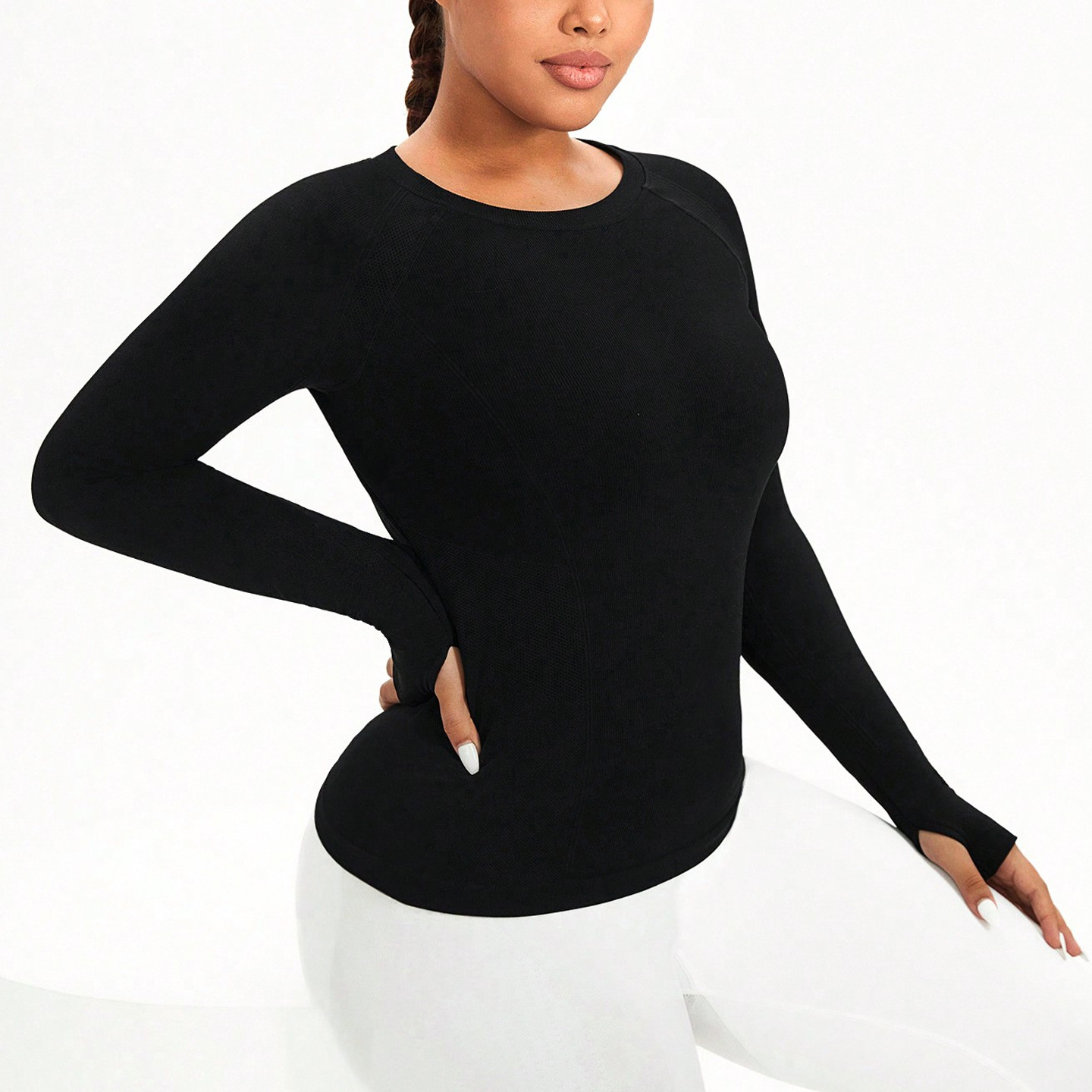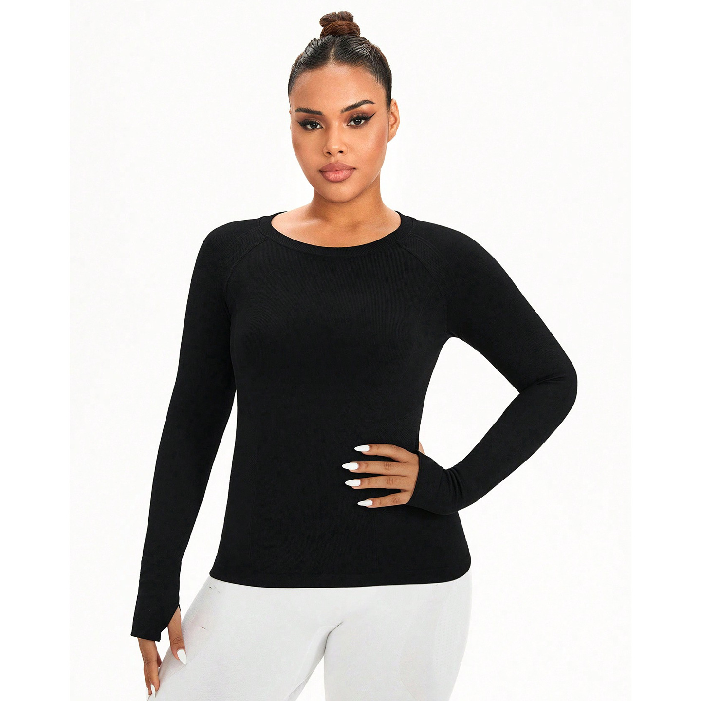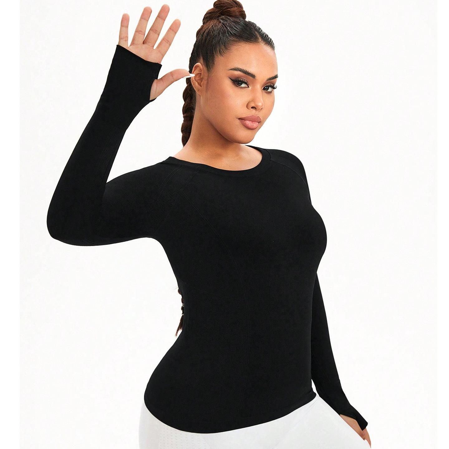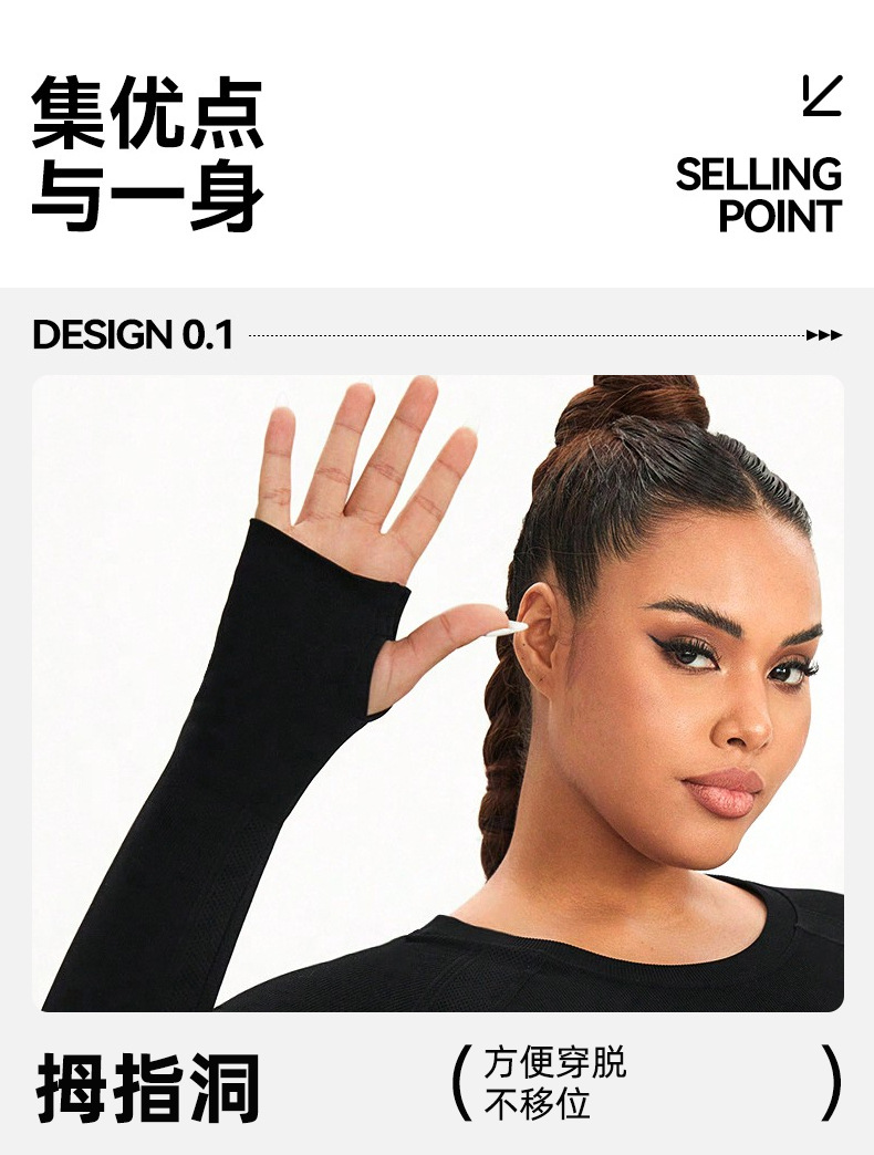 cross-border plus size yoga wear top women's solid color round neck plump girls quick-drying stretch tight training sports workout long sleeve