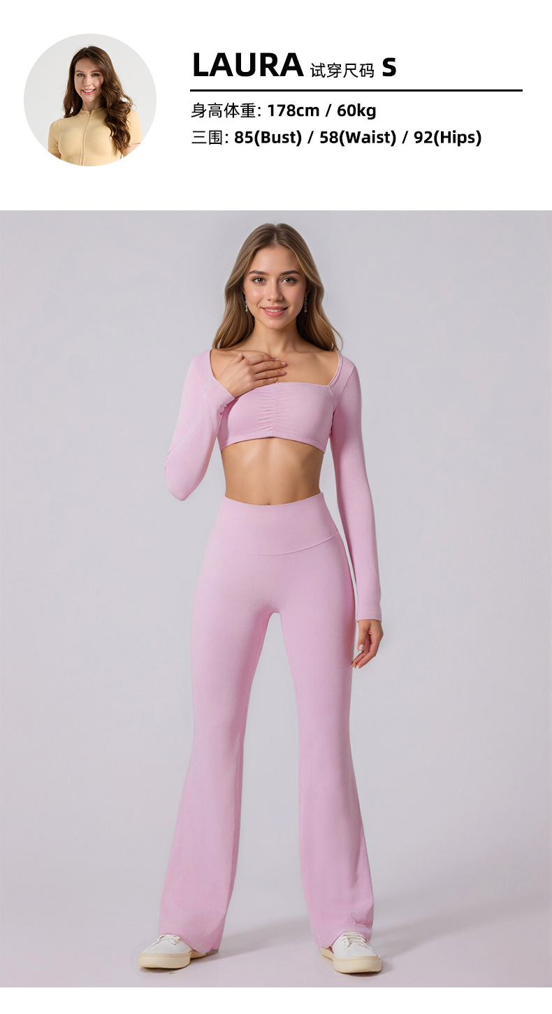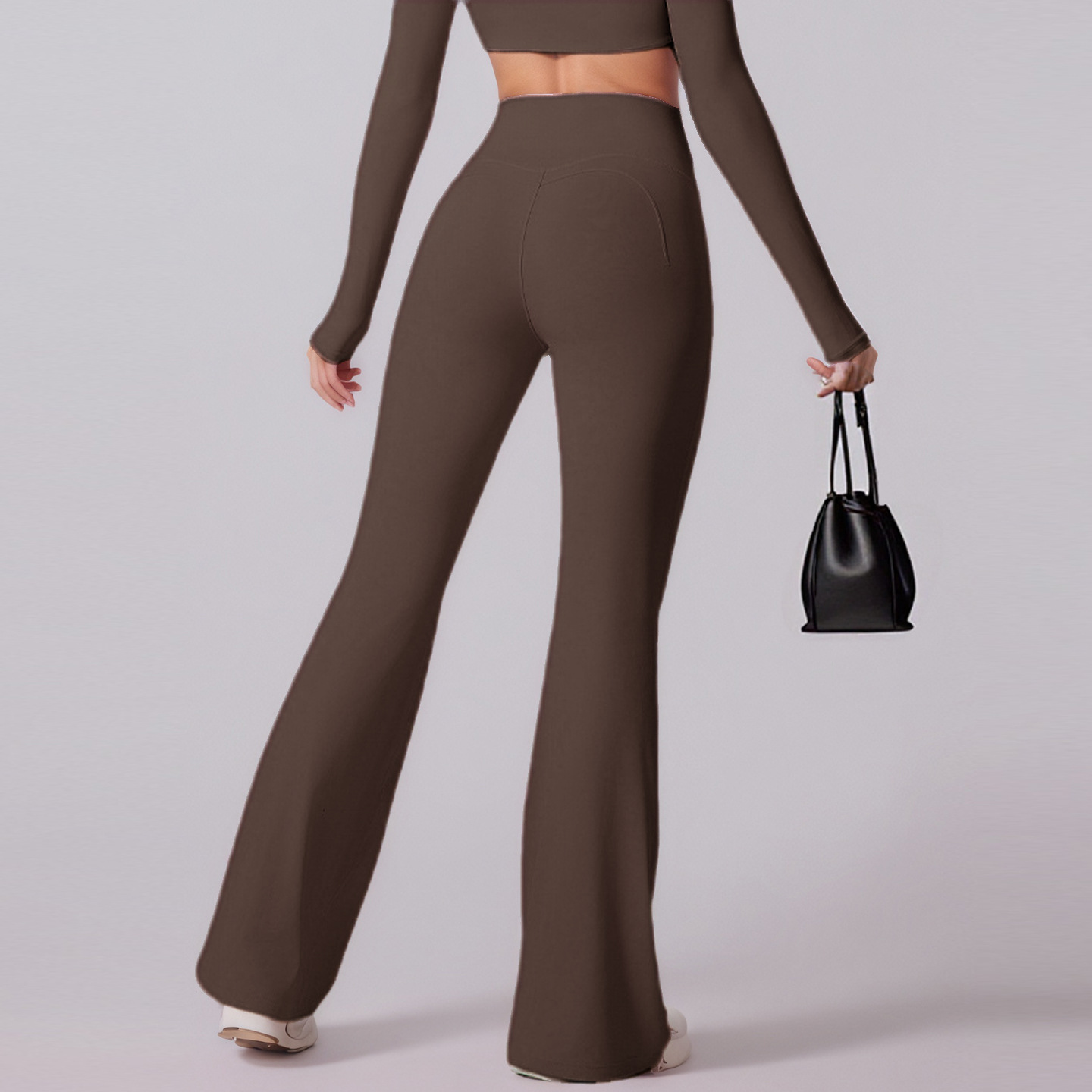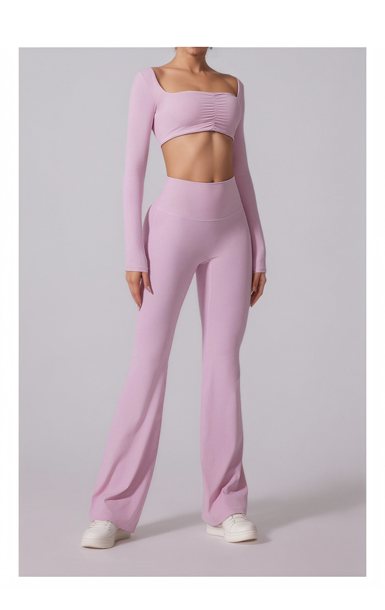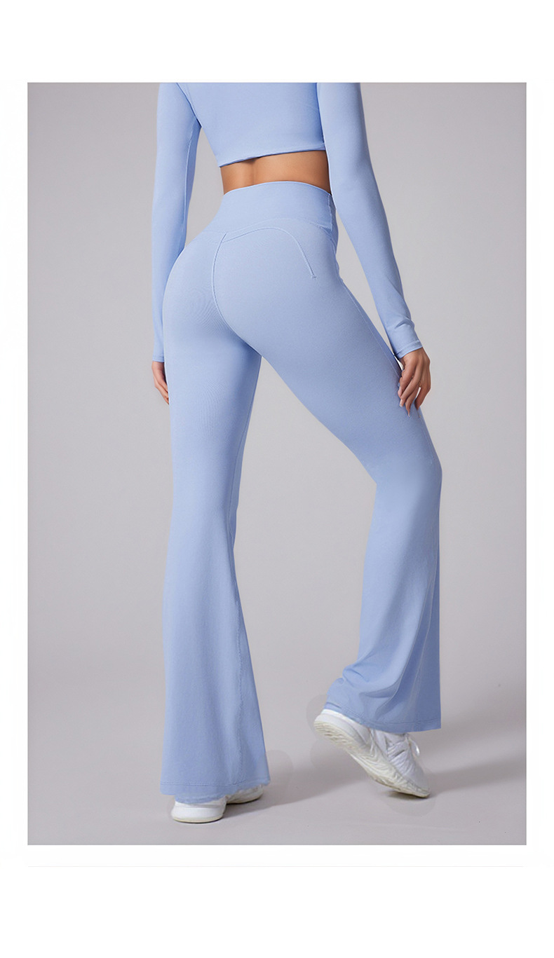 cross-border new arrival high waist brushed solid color slightly flared yoga pants shaping slim fit nude feel loose sports quick-drying trousers