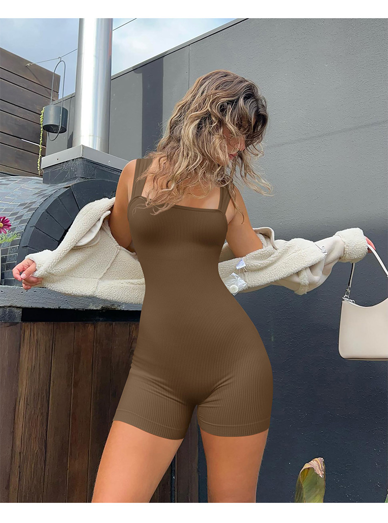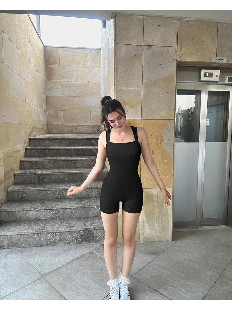 Cross-border autumn and winter threadless armless yoga-style one-piece suit with no awkward lines, peach bottom, high-elasticity, tight-fitting one-piece clothing.