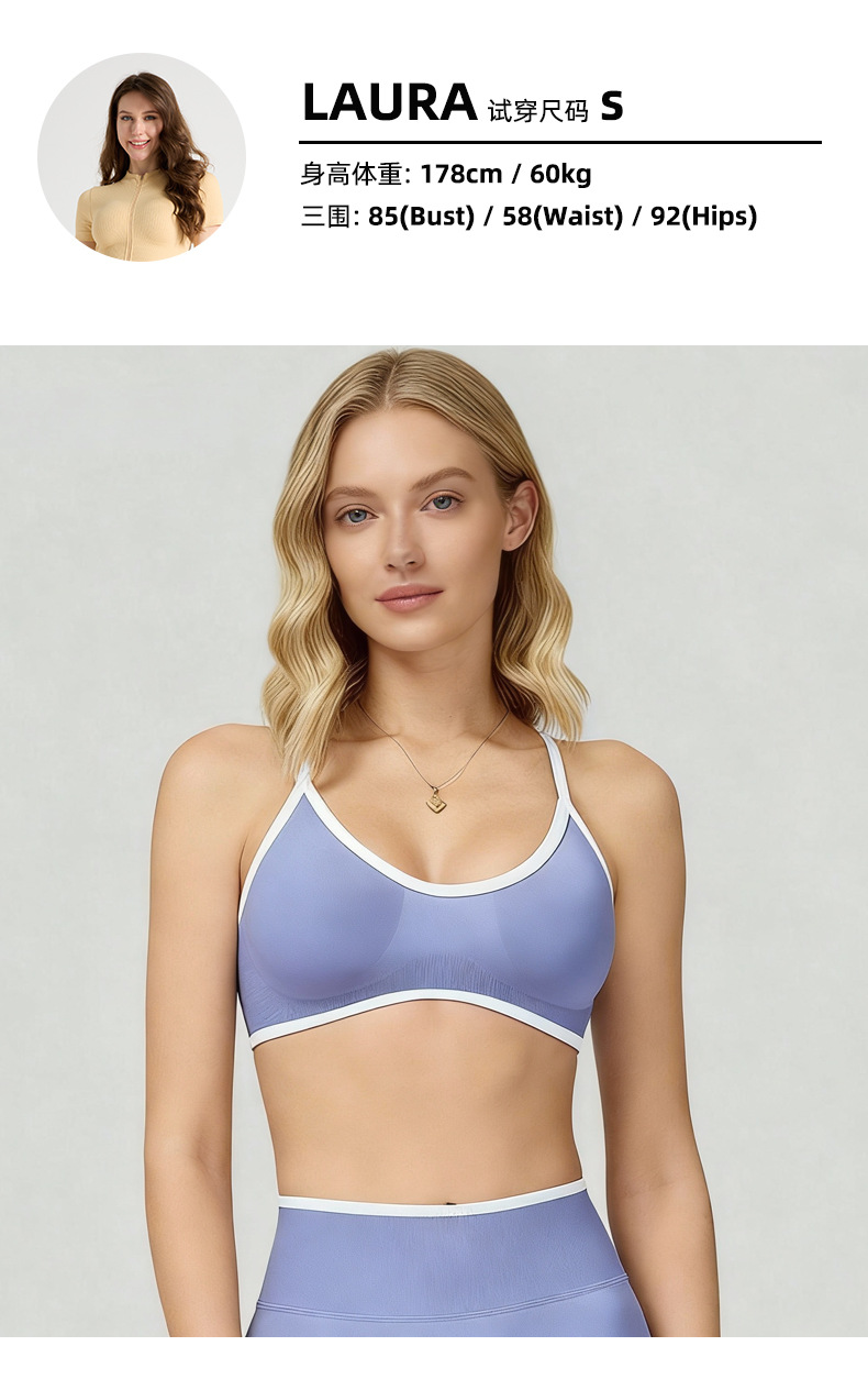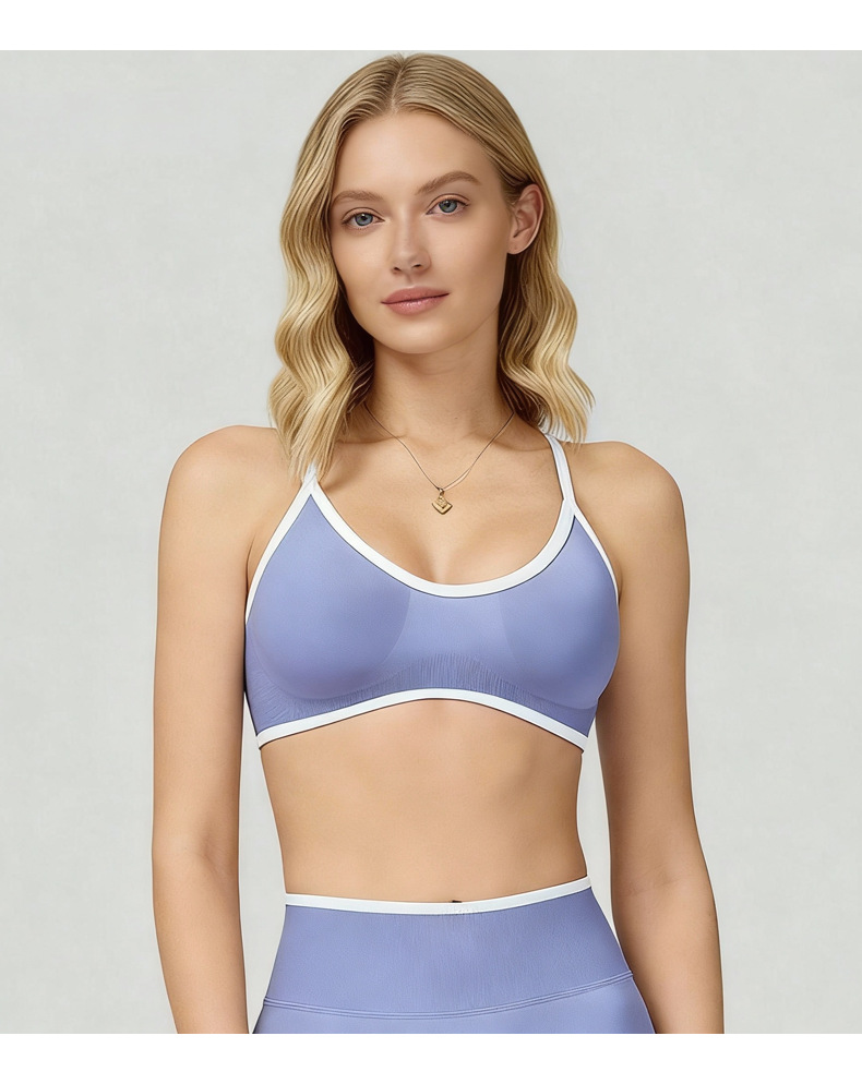 yoga sports bra seamless contrast color boud edage belt chest pad hollow beauty back outdoor running workout underwear quick-drying