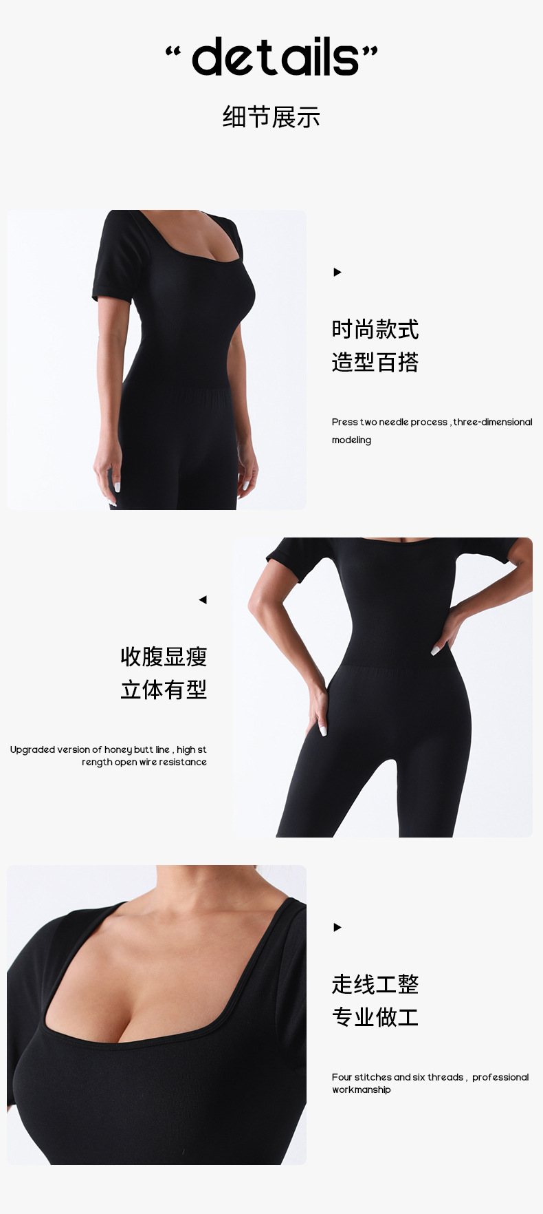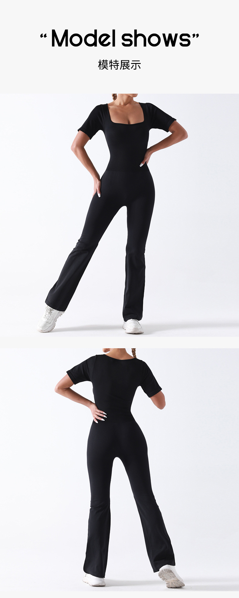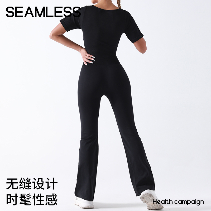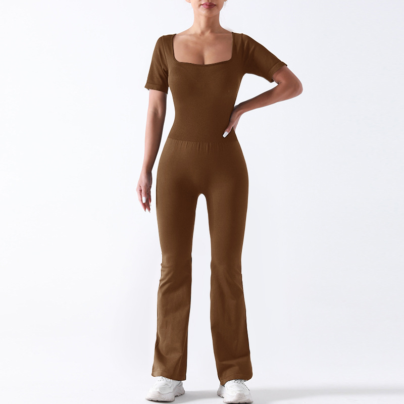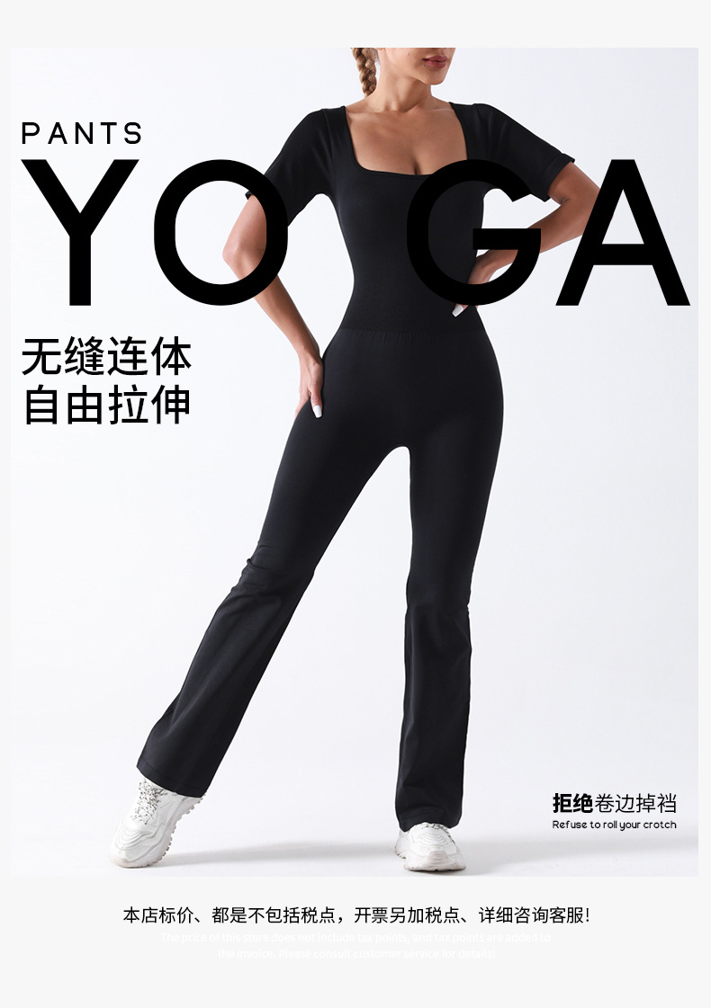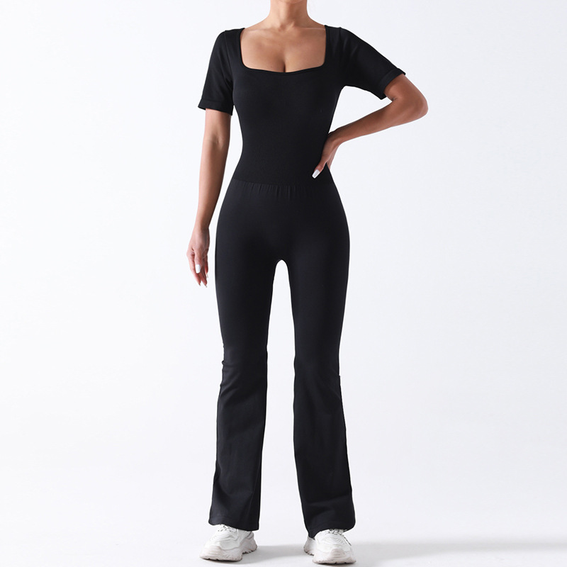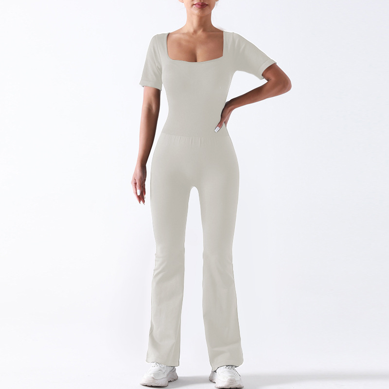 baoshun cross-border chest pad yoga jumpsuit short sleeve square collar wide leg trousers yoga bodysuit slim fit slimming