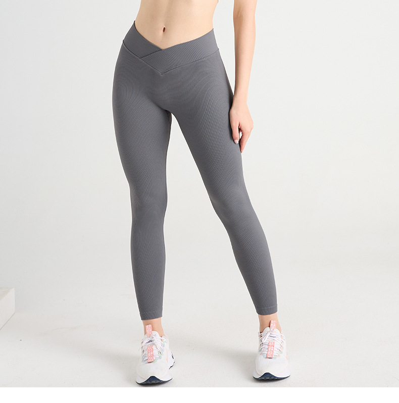 Cross-over waist yoga leggings with threaded design