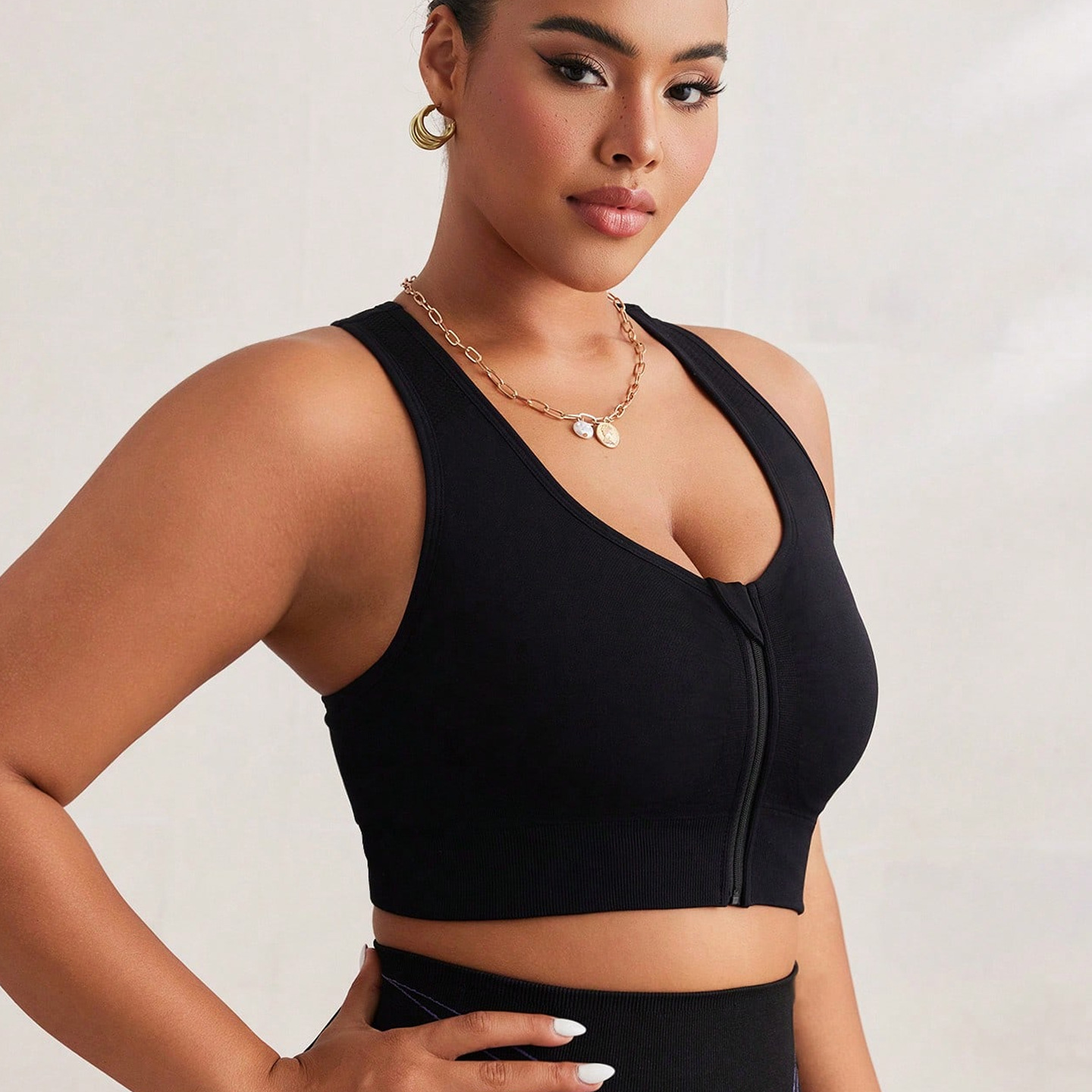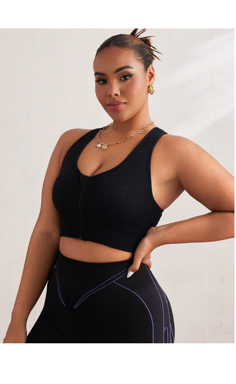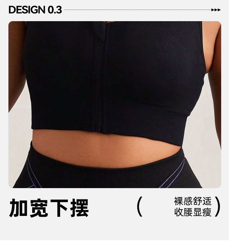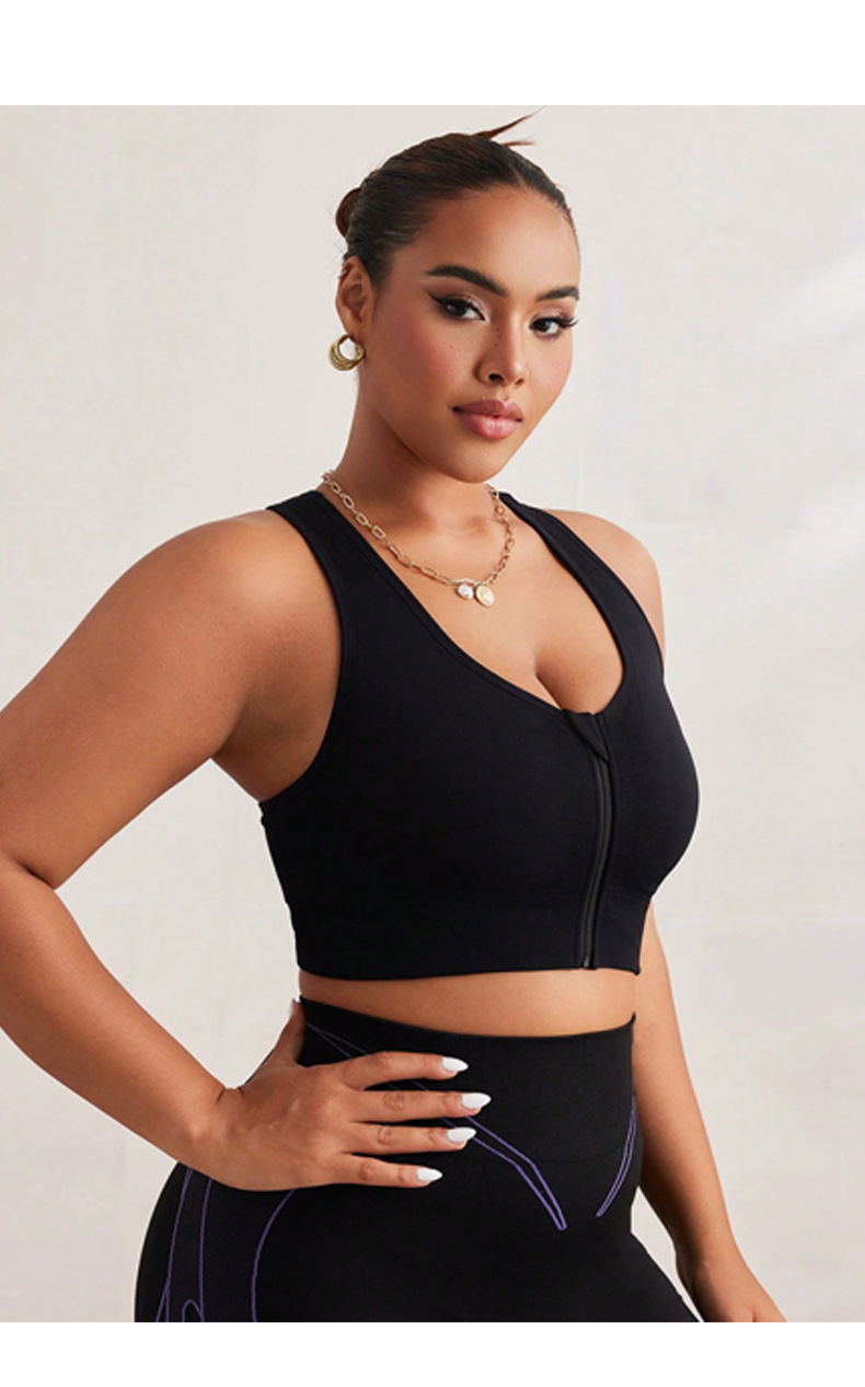 New large size zipper front yoga sports bra with increased breathability and skin-friendly material for women, anti-vibration running fitness vest