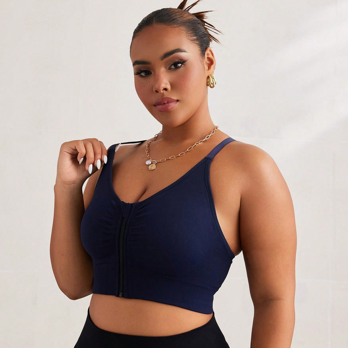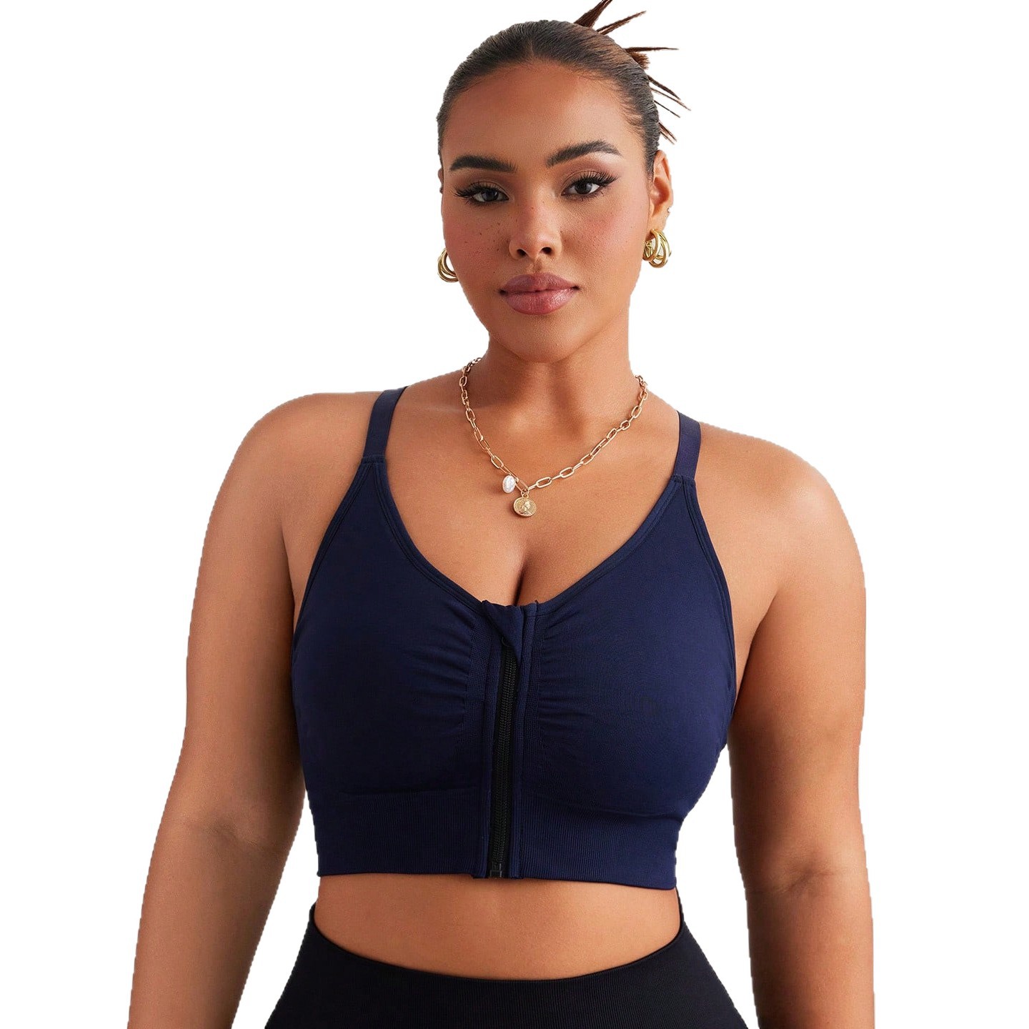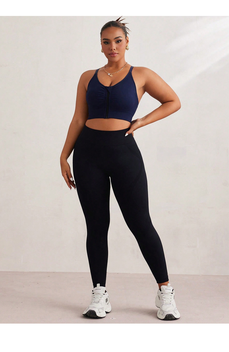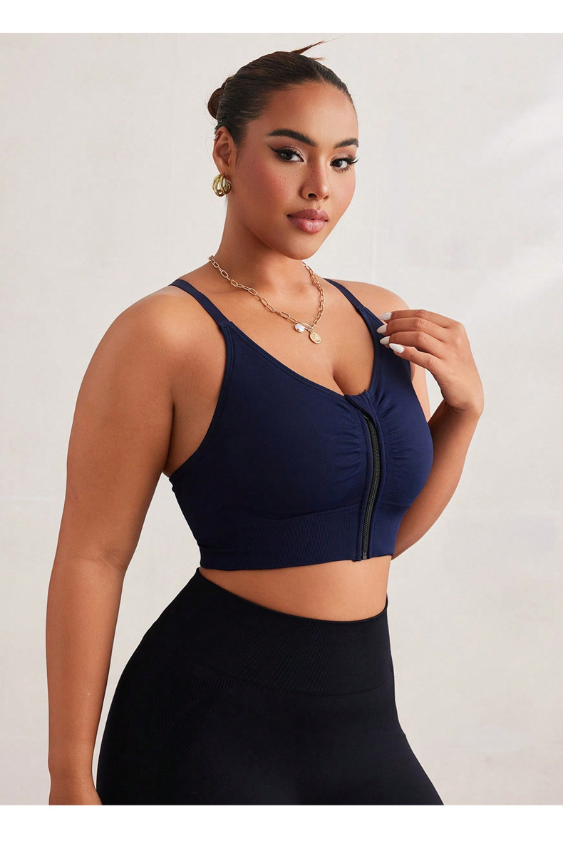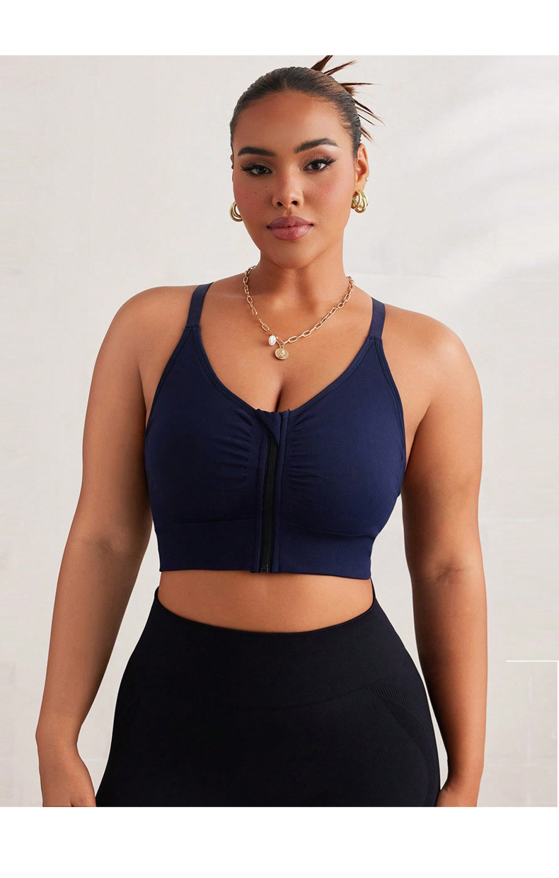 Baoshun Plus Size Sports Bra with High Elasticity Front Zipper, Crossed Sexy Back, Anti-Vibration, Underwiring, and Supportive Fitness Bra