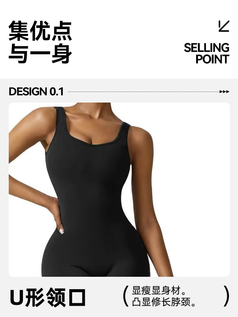 Yoga one-piece with U-shaped back and invisible seam for training and exercise