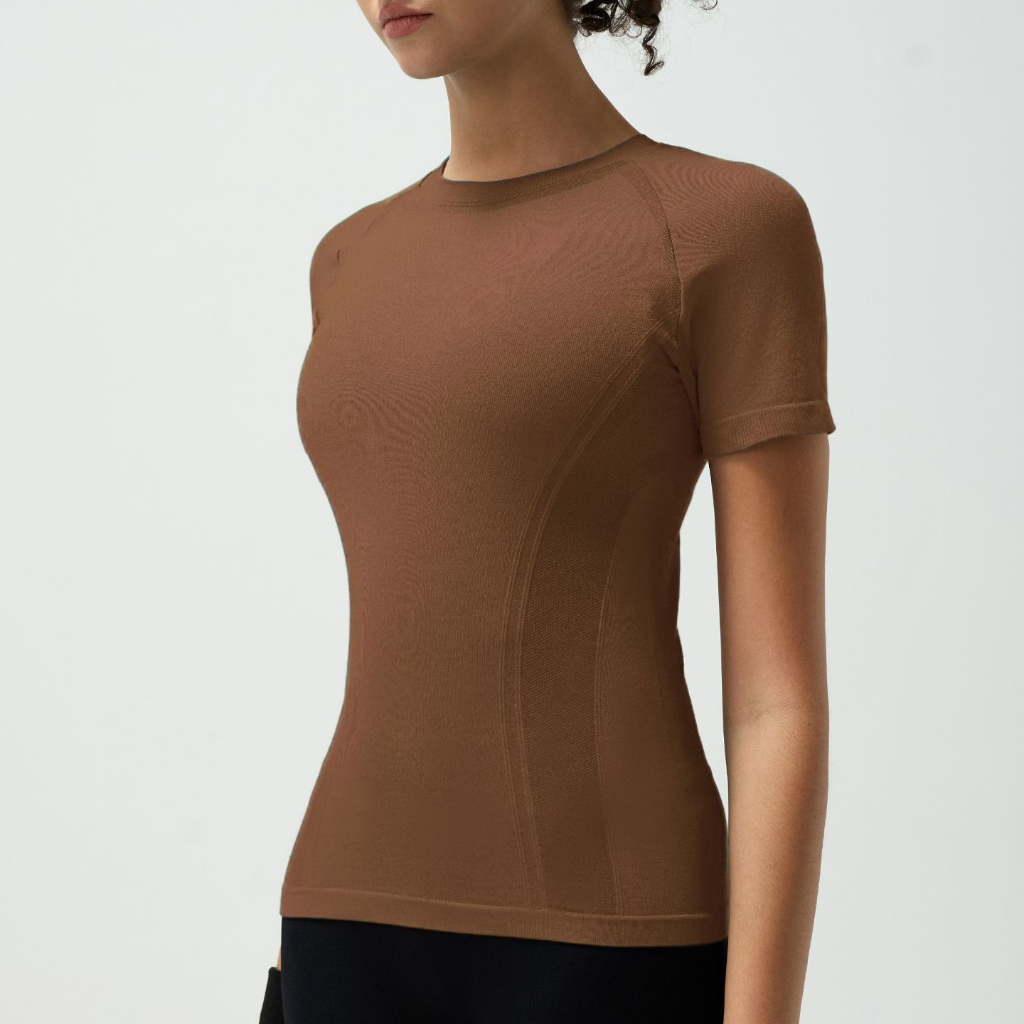 Cross-border summer yoga wear for women, short-sleeved T-shirts with striped breathable design, quick-drying and versatile blouse, fitness clothing