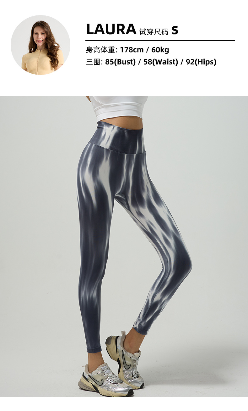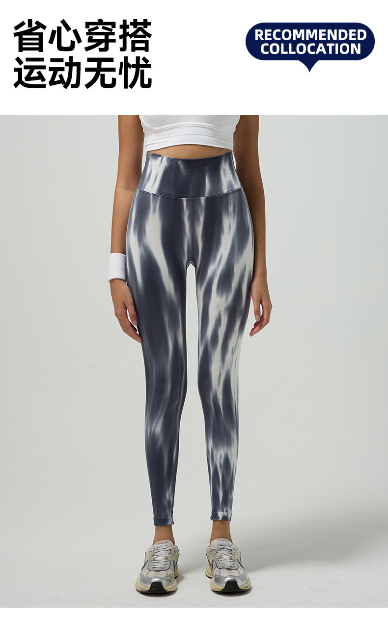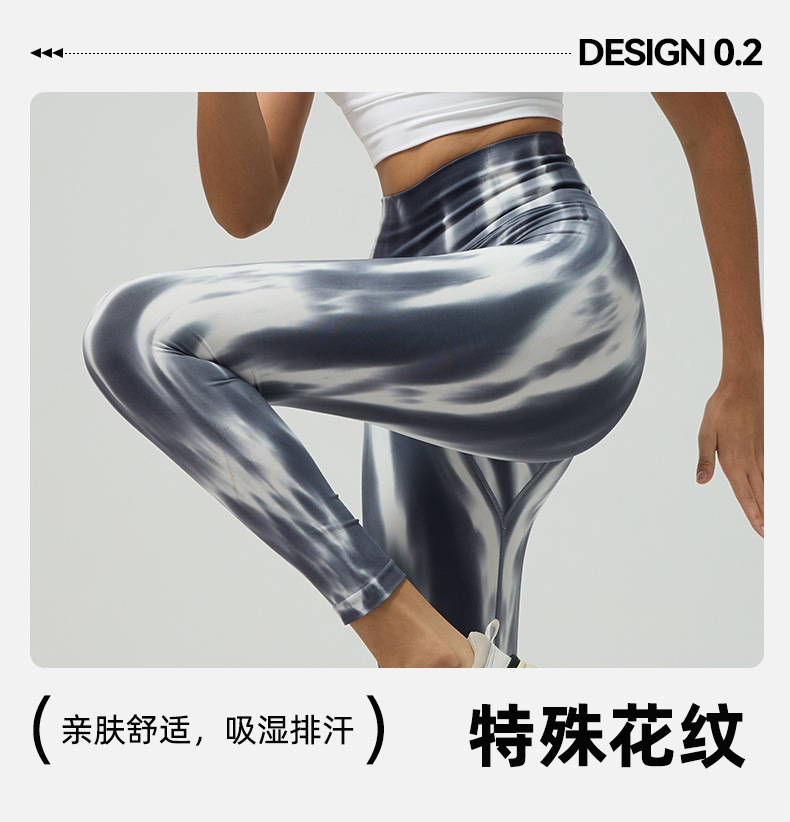 Cross-border spring and summer spray dyeing yoga pants seamless fake plain tight naked feeling peach butt running sports fitness pants