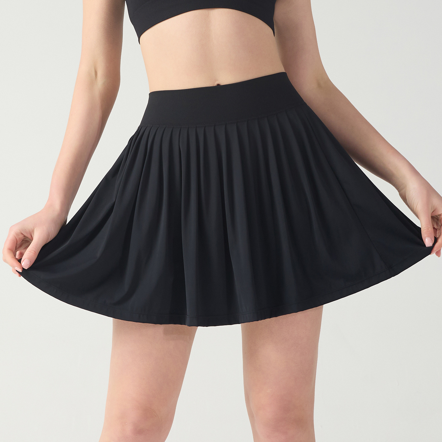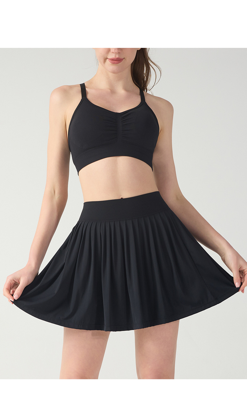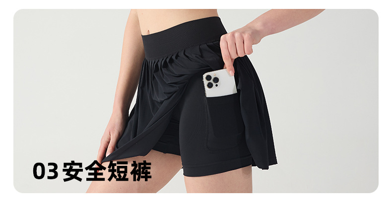 processing customized high top sports short skirt women's fake two-piece anti-exposure solid color tennis skirt quick-drying fitness yoga skirt