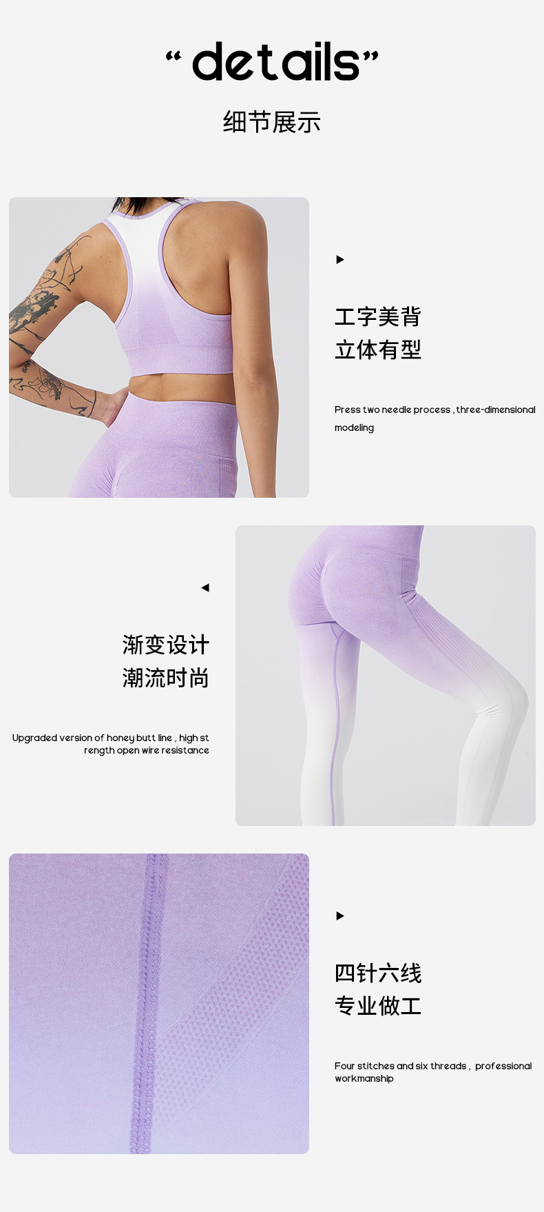 Gradient color running fitness sports yoga outfit set