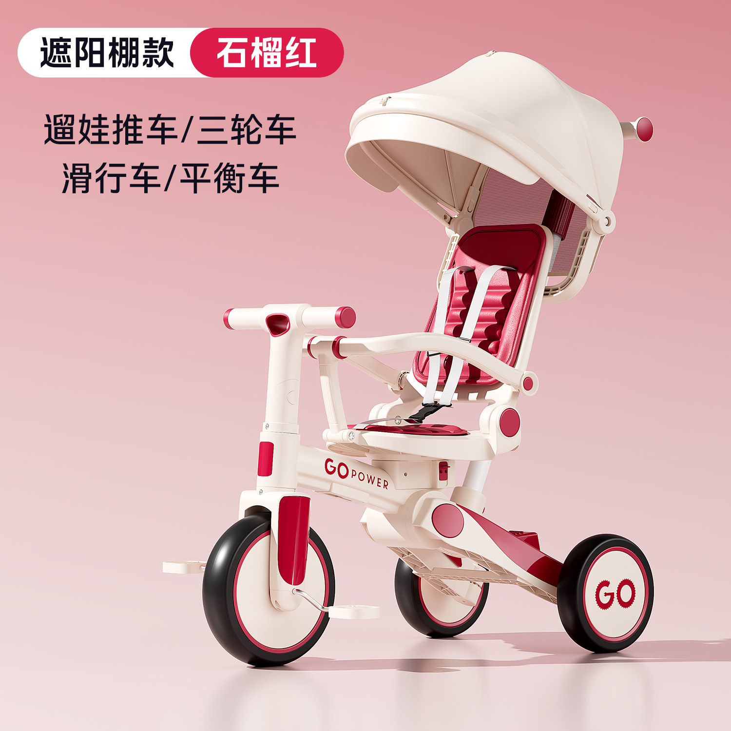 ddw-pomegranate red two-way seat push handle steering + sunshade