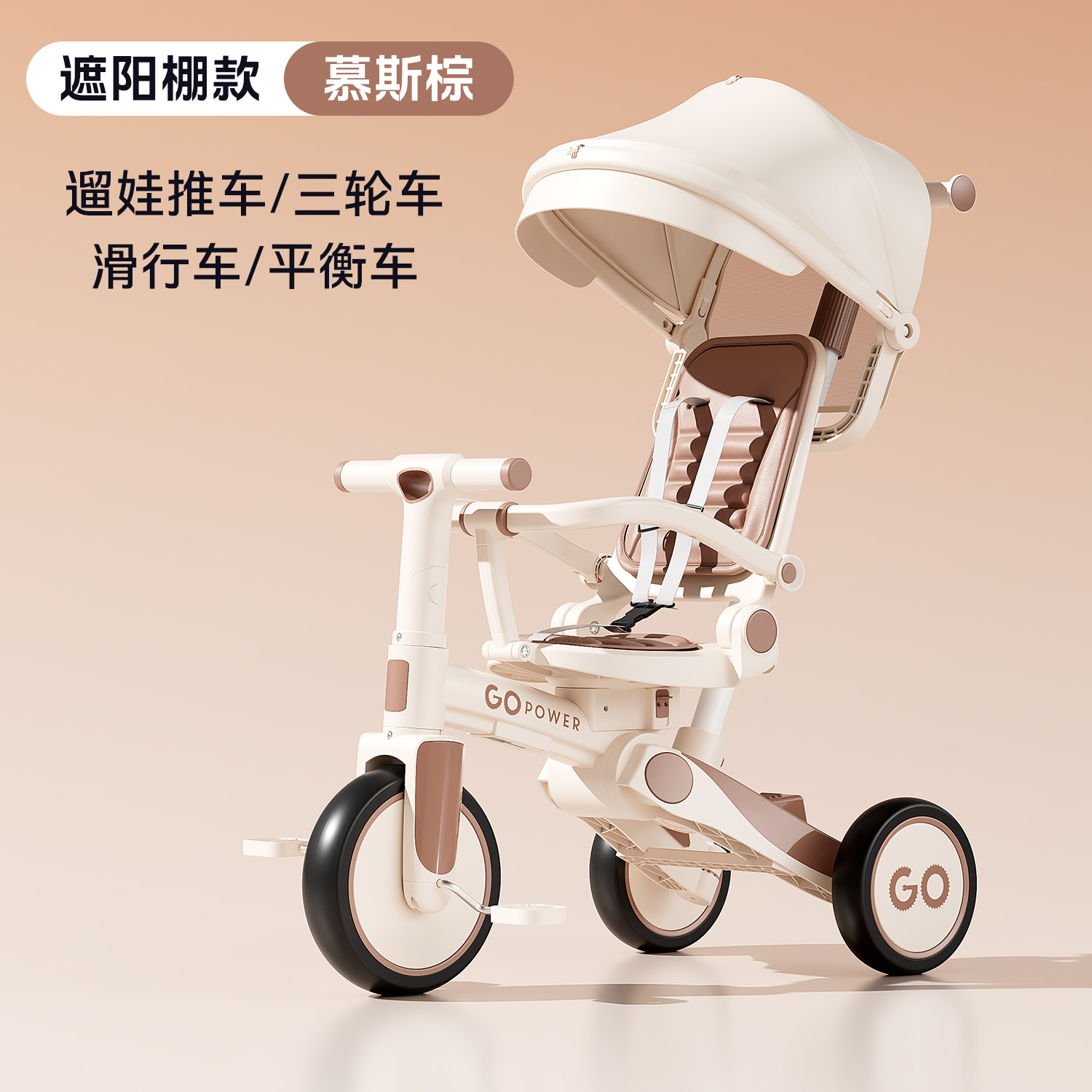 ddw-mousse brown two-way seat push handle steering + sunshade