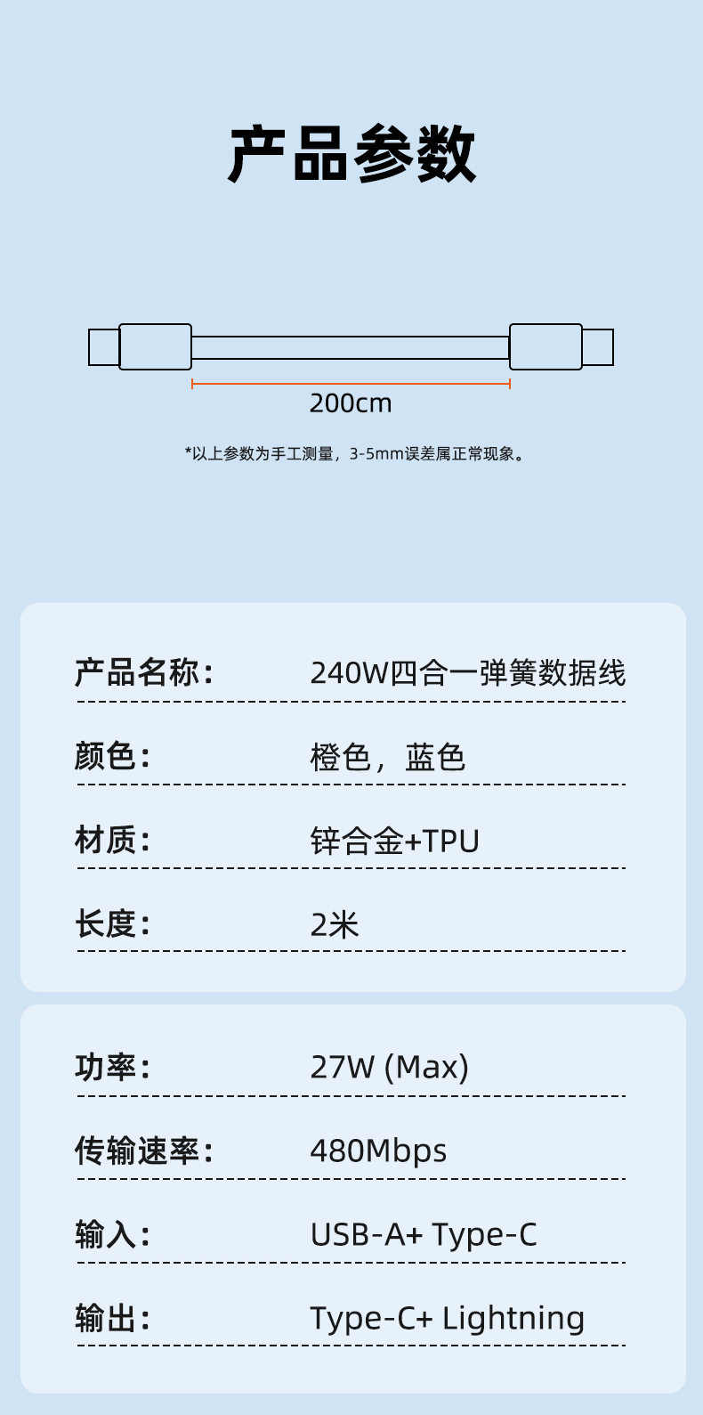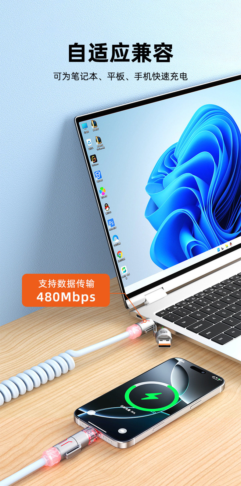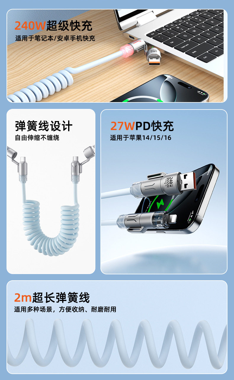 zinc alloy + tpu2 m four-in-one aromatherapy spring data cable-blue