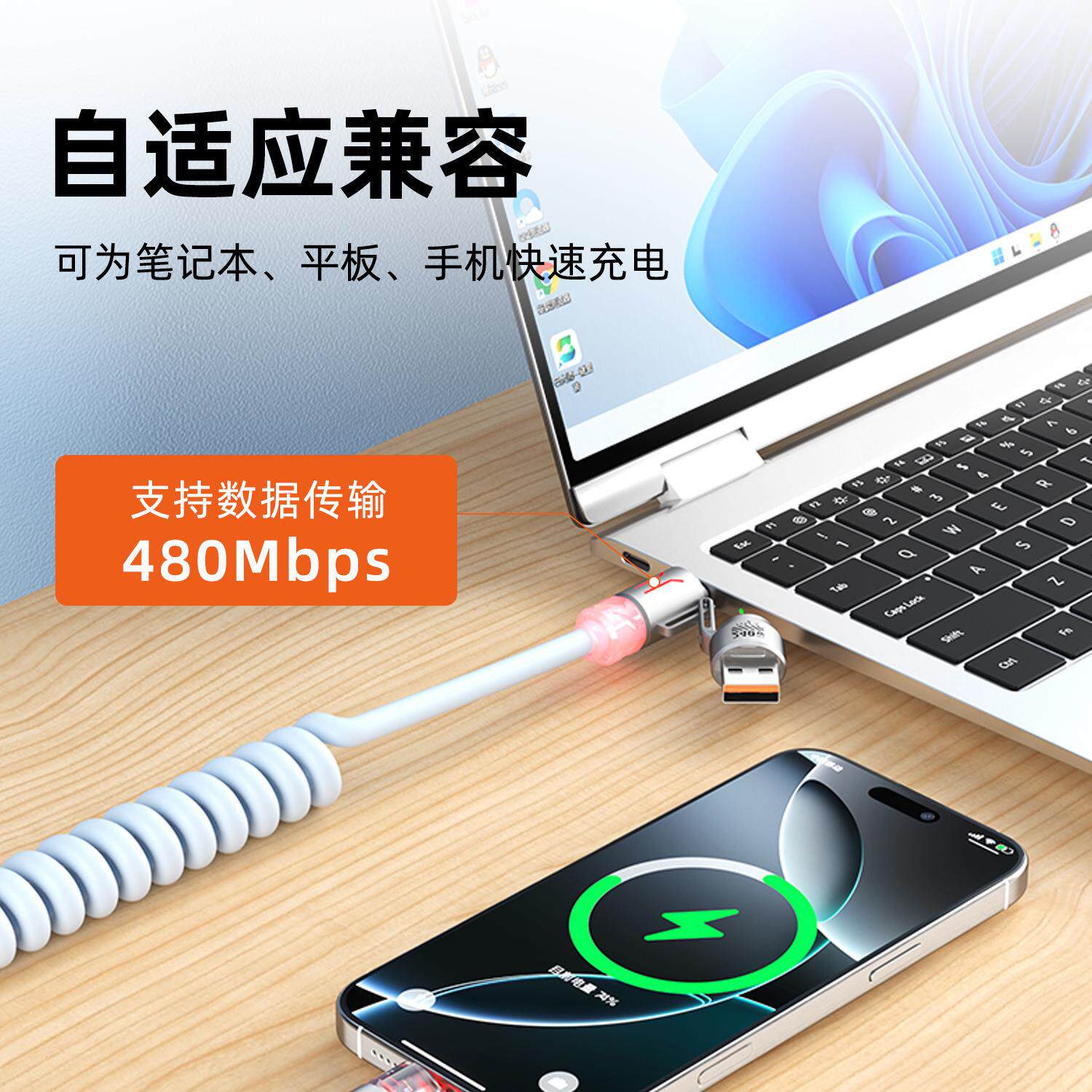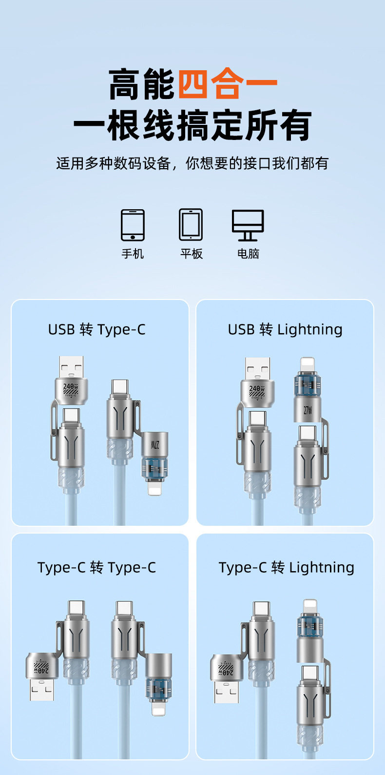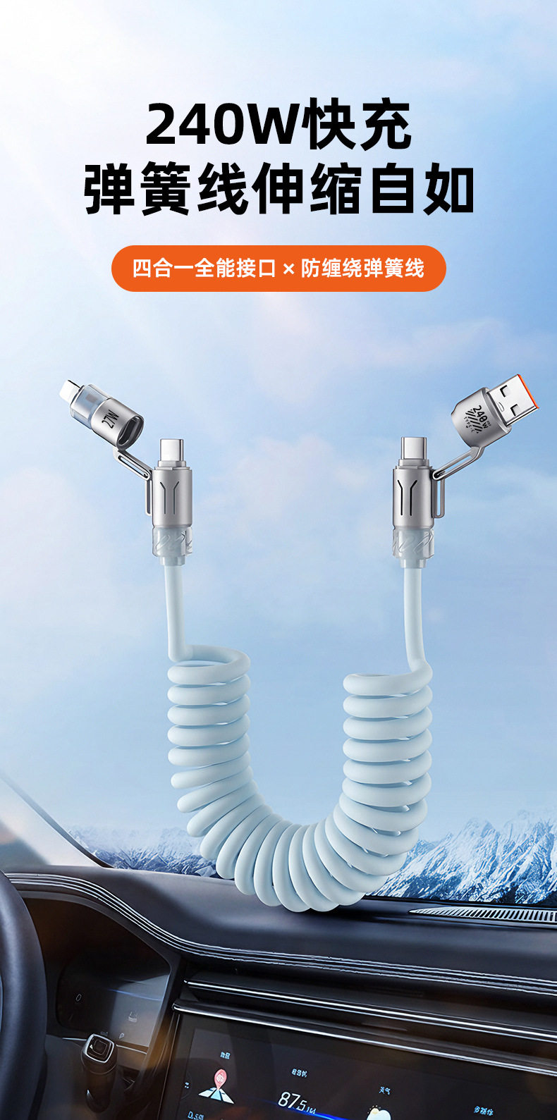 zinc alloy + tpu2 m four-in-one aromatherapy spring data cable-orange