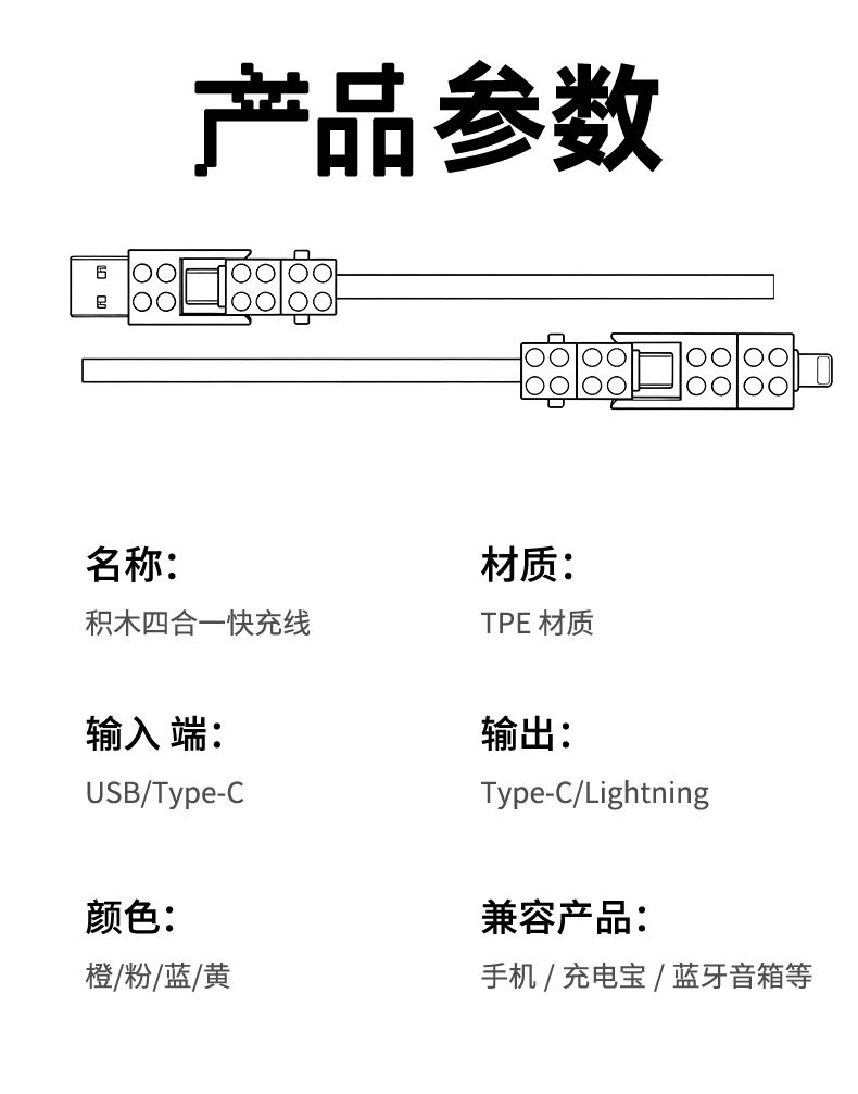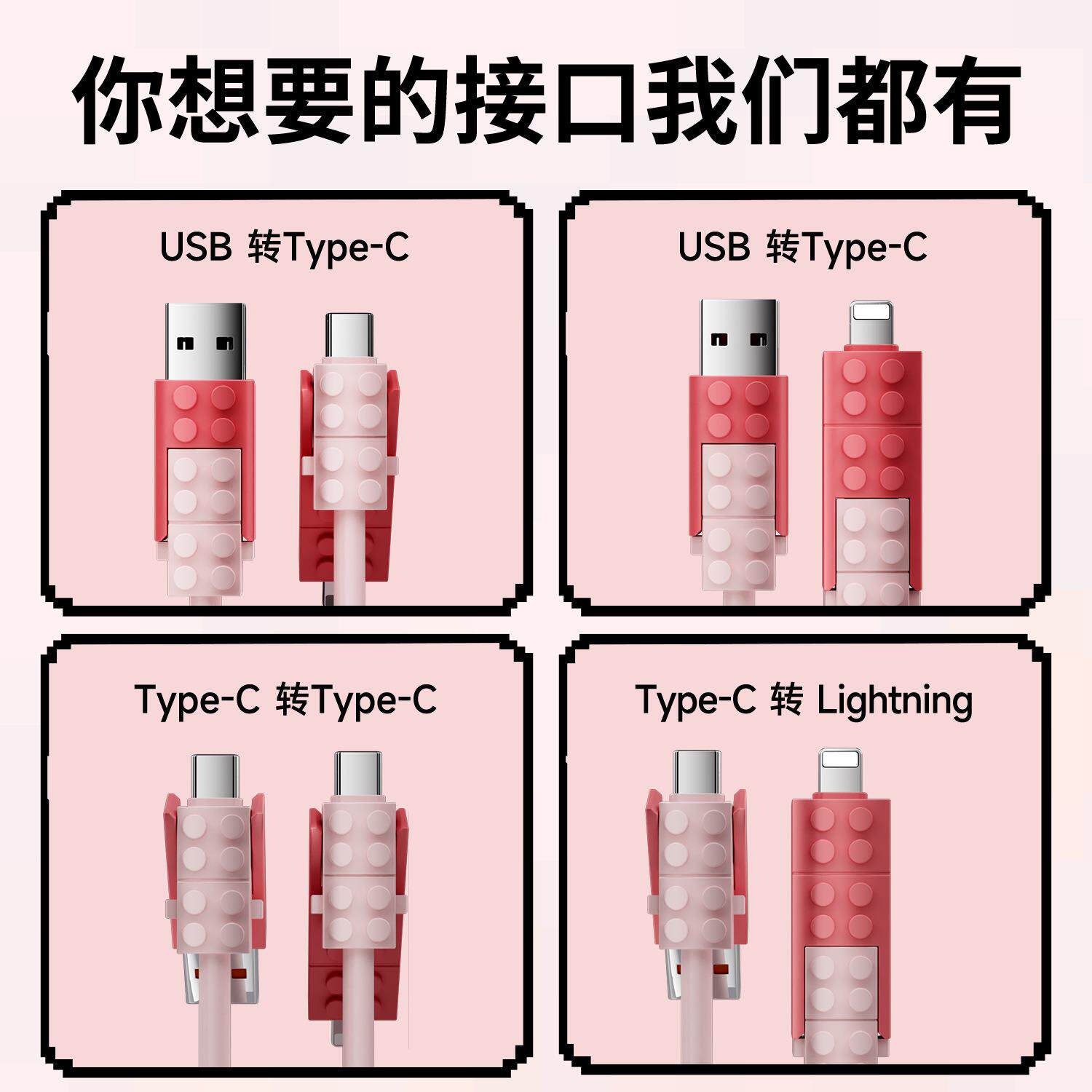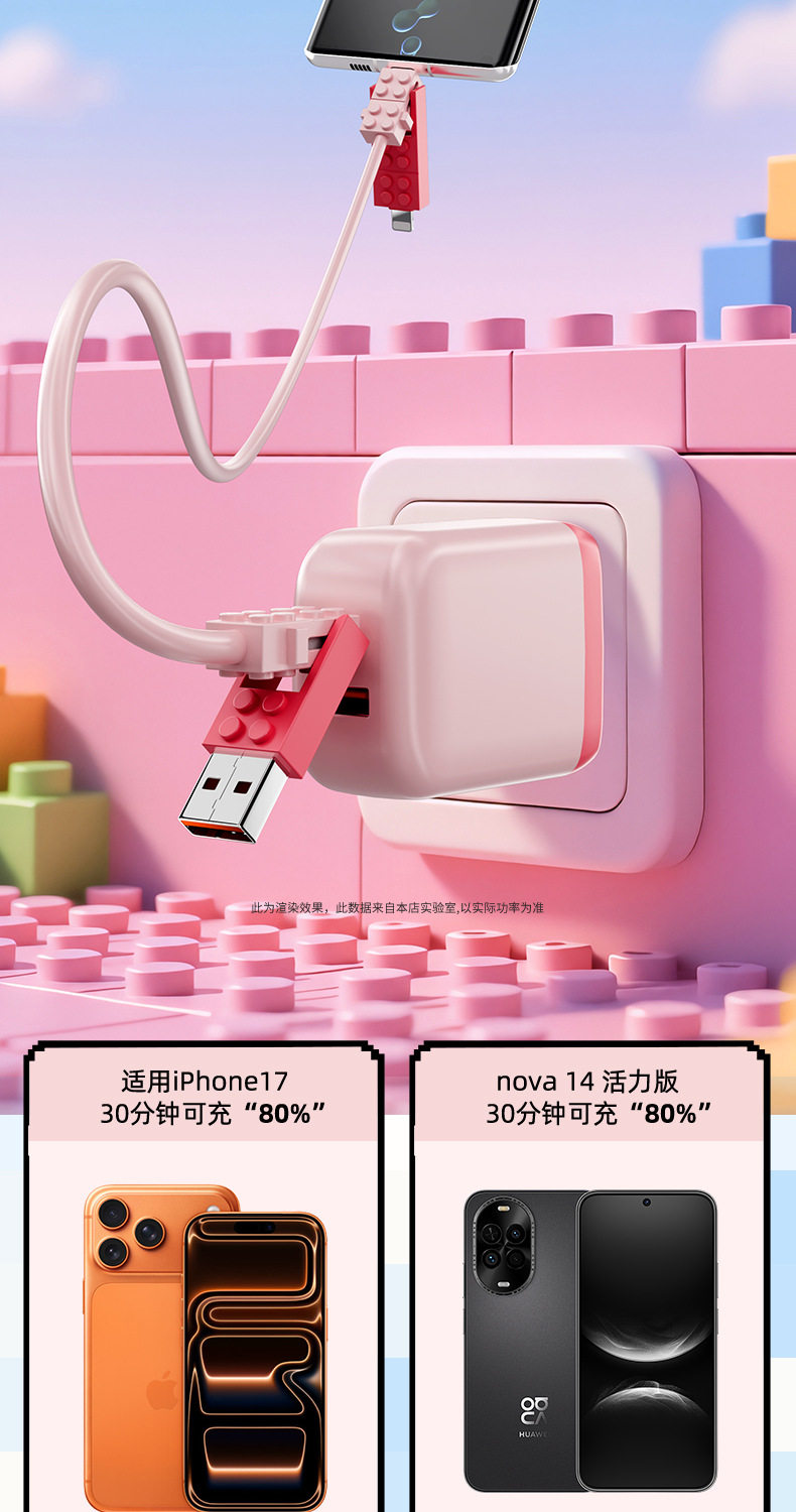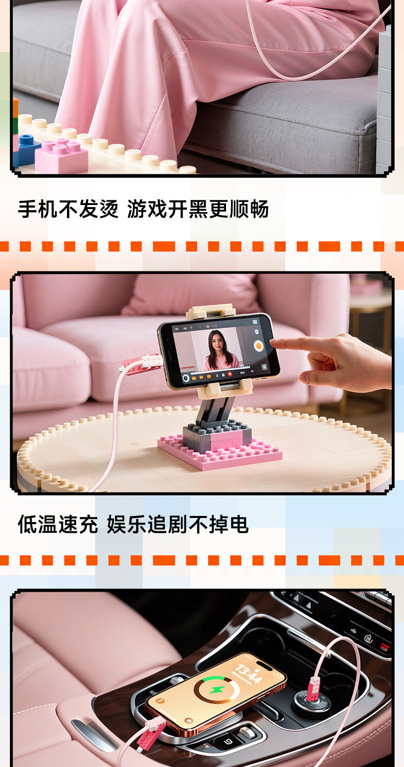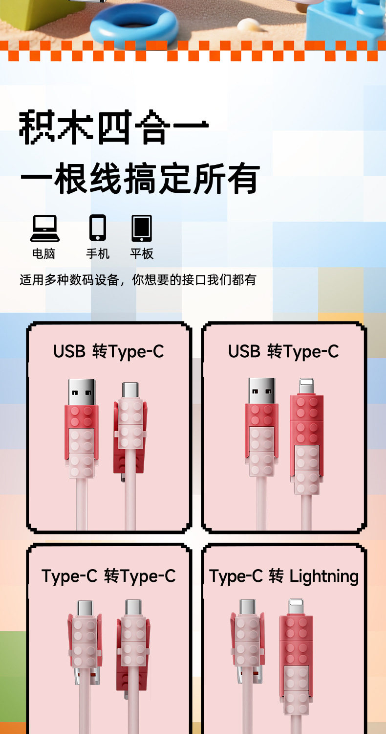 lego building blocks four-in-one data cable [pink cherry] 1 m