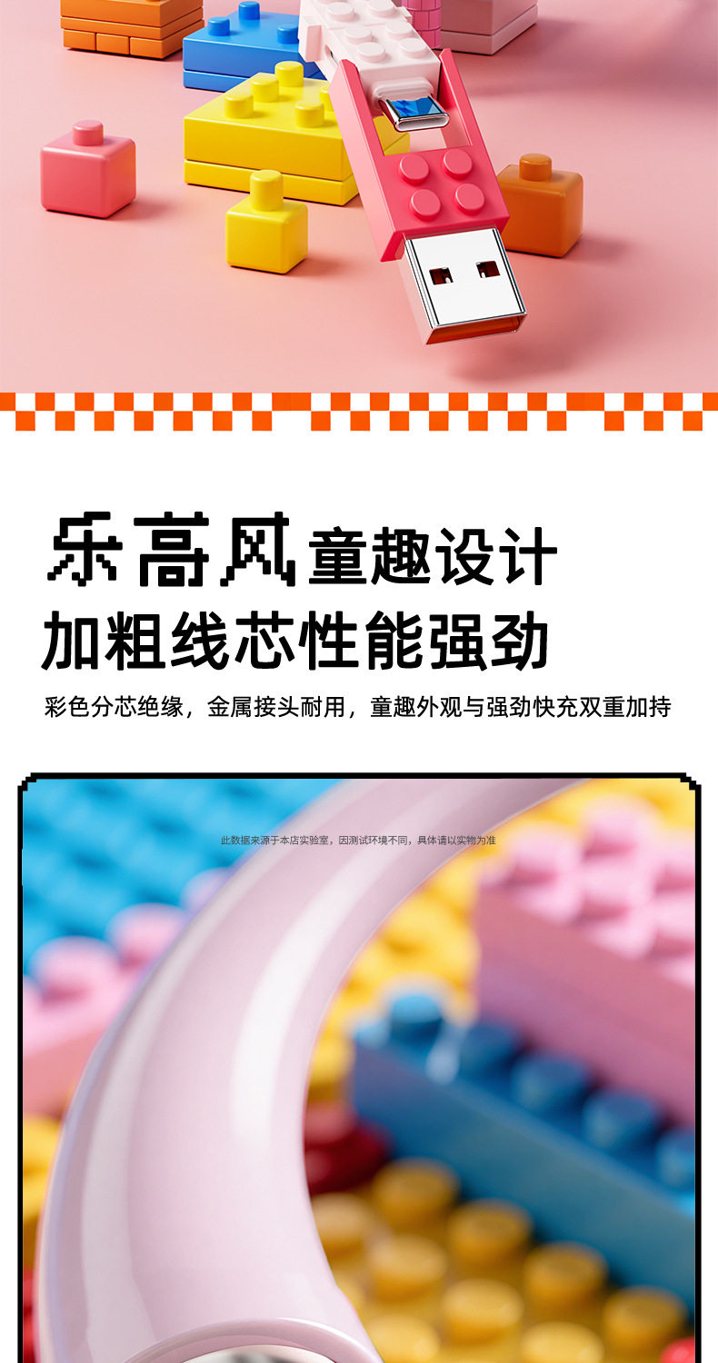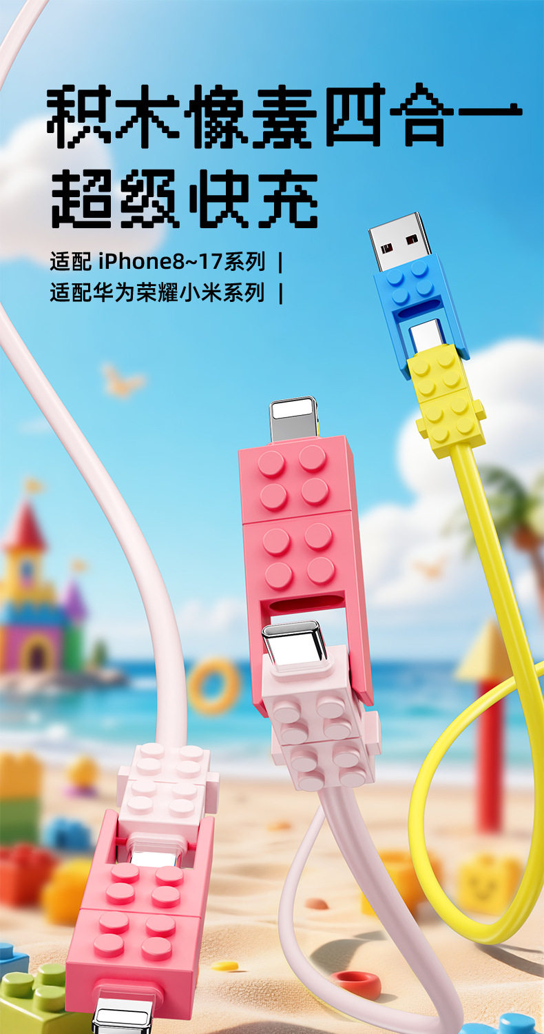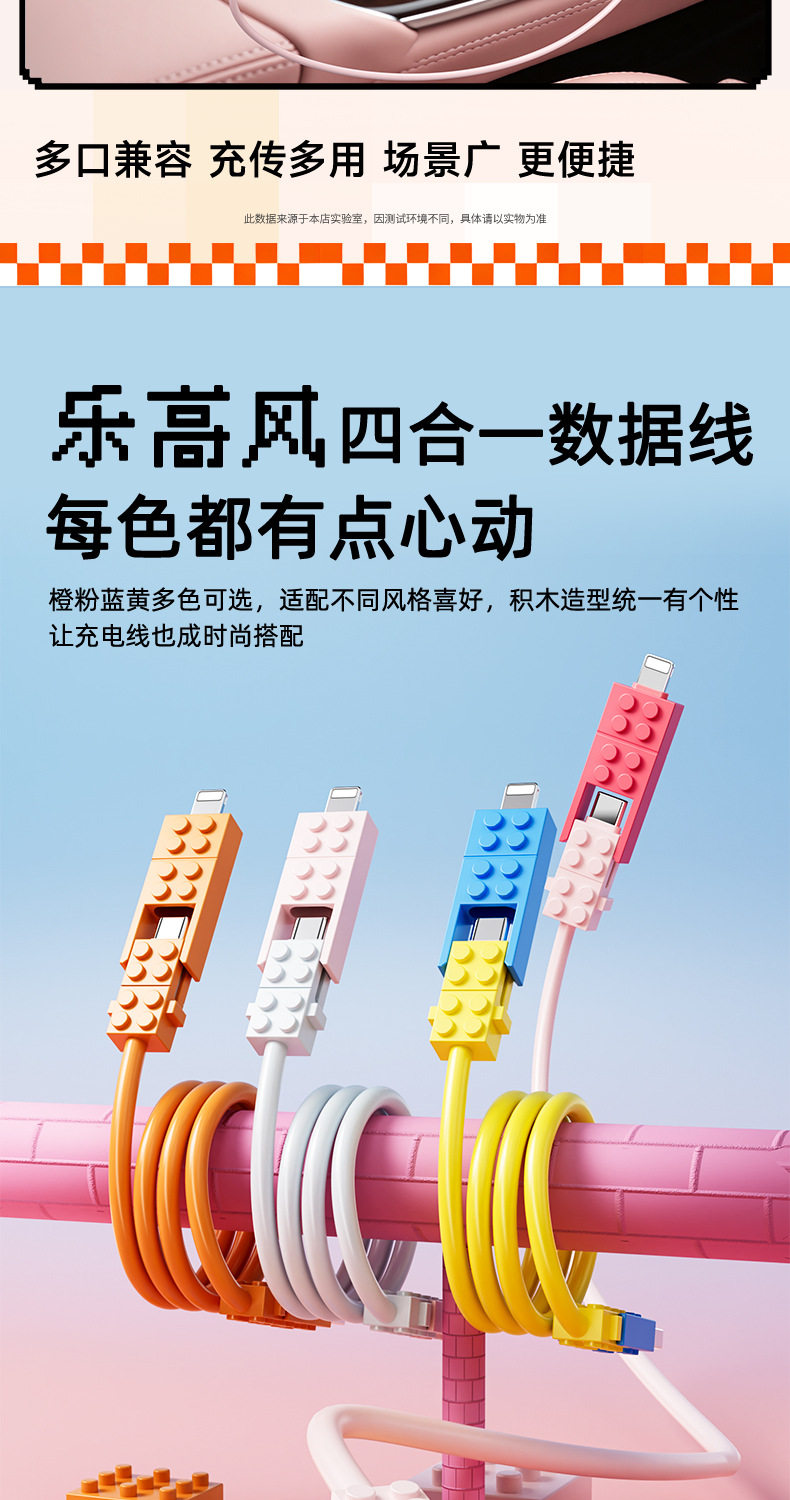 lego building blocks four-in-one data cable [blue pink] 1.5 m