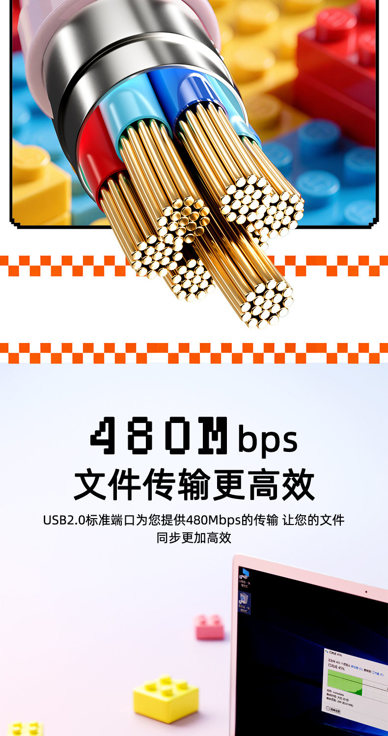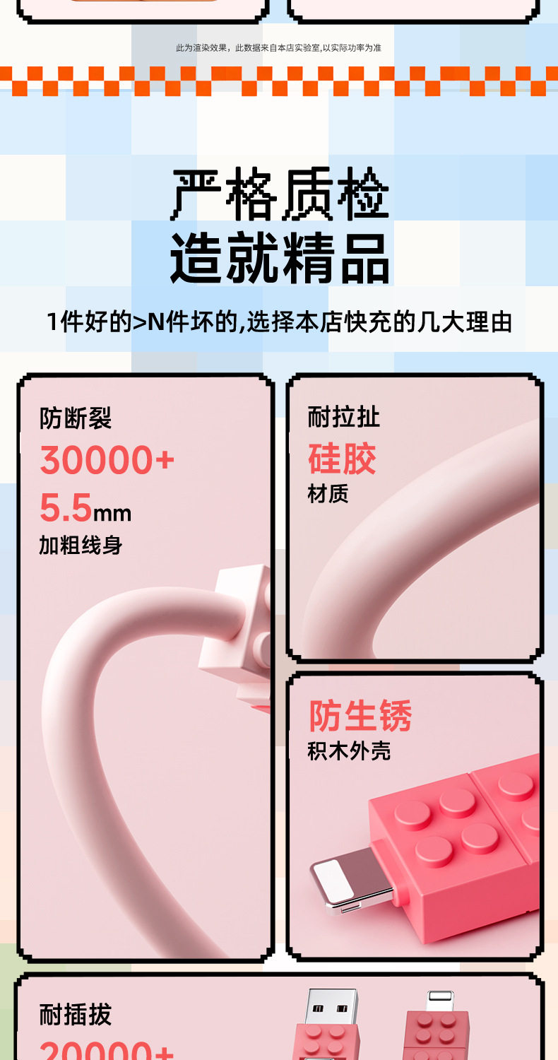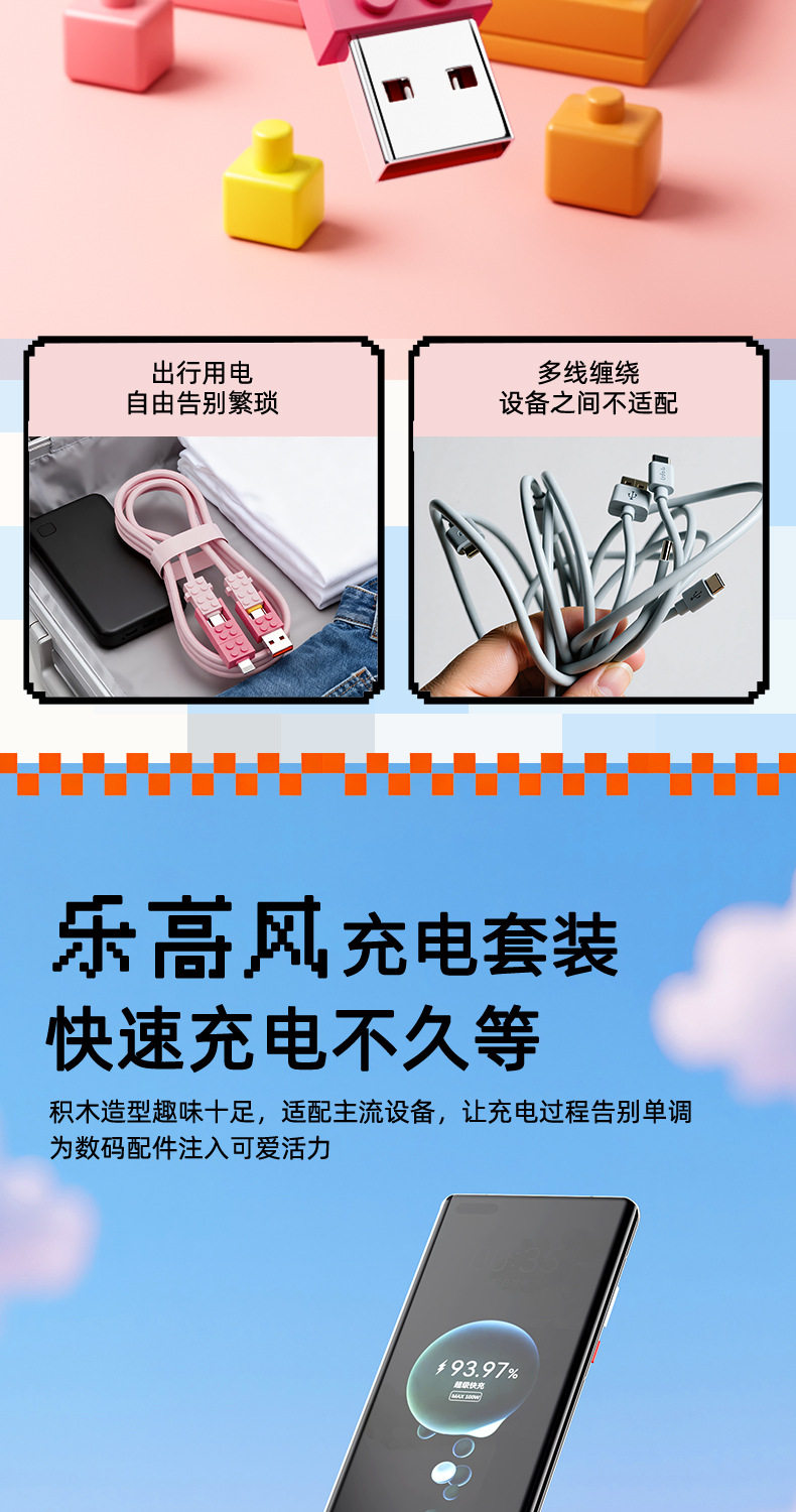 lego building blocks four-in-one data cable [blue pink] 1.5 m