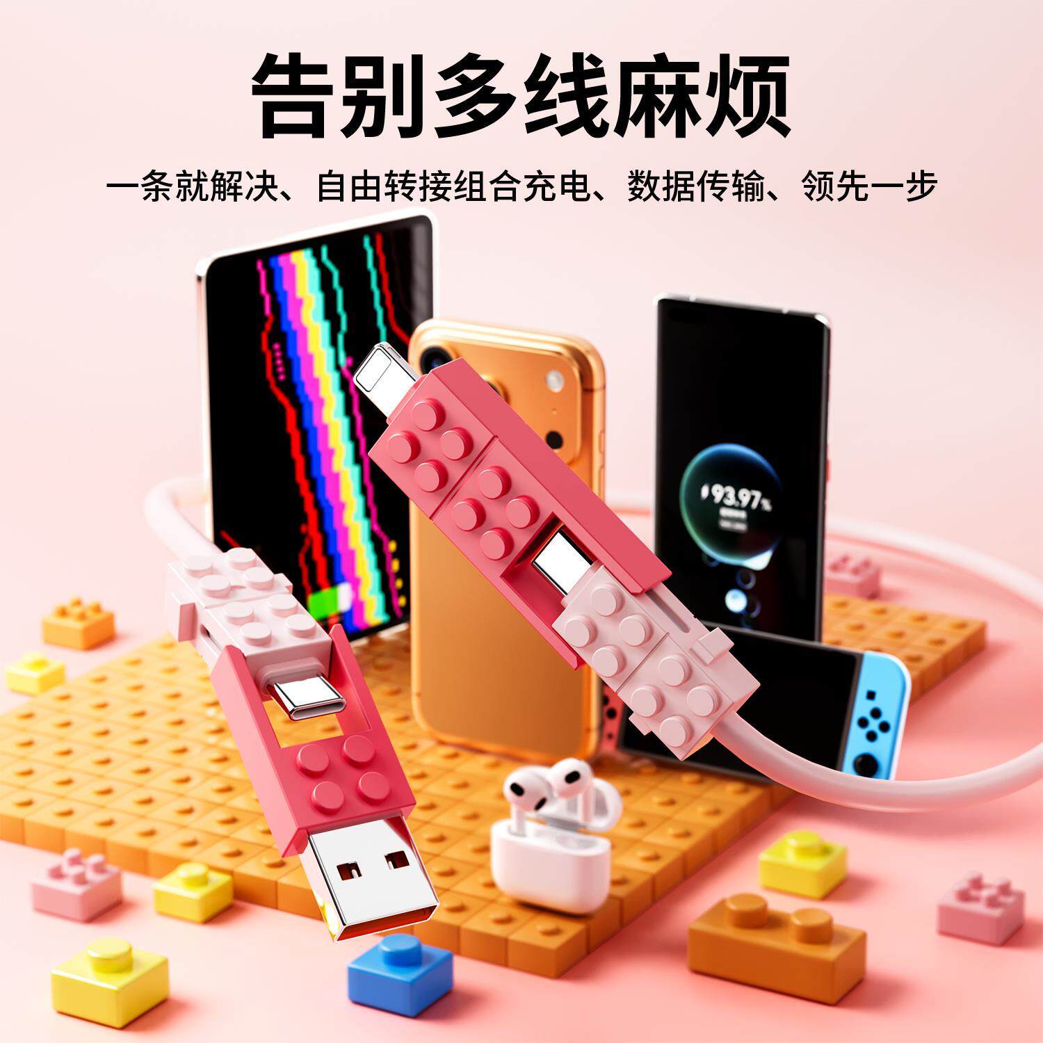 lego brick 4-in-1 data cable [pink cherry blossom] 1.5m