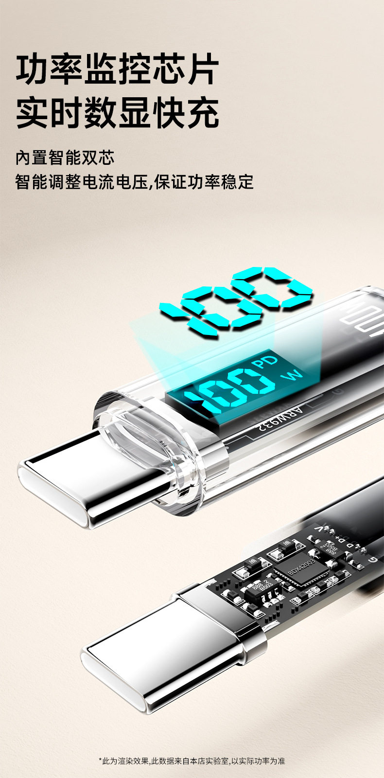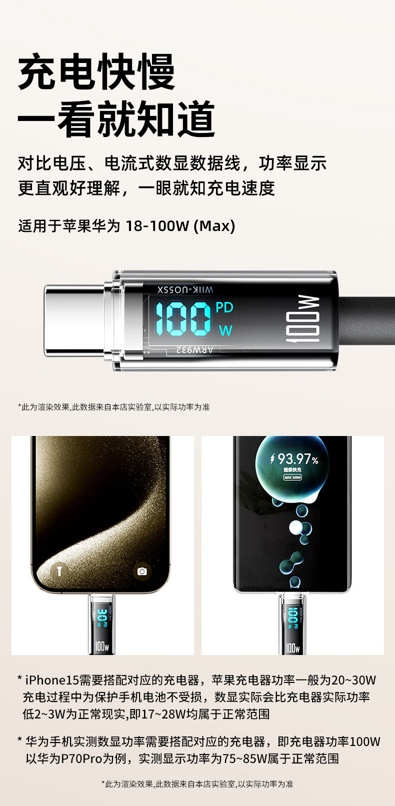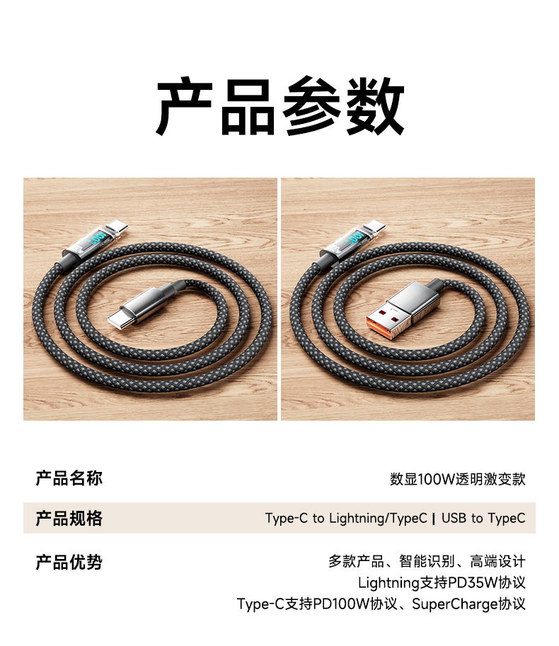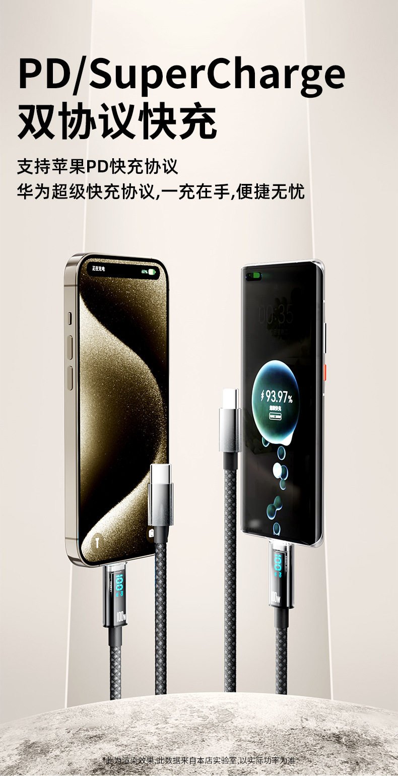 [a-c] 1 m real 100w smart digital display fast charge line [with e-marker chip] huawei glory nude