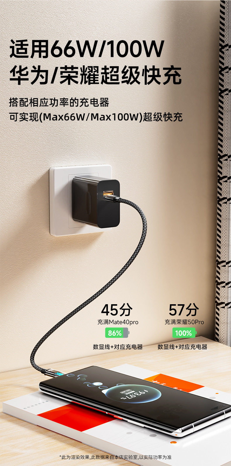[a-c] 1.5 m real 100w smart digital display fast charge line [with e-marker chip] huawei glory box