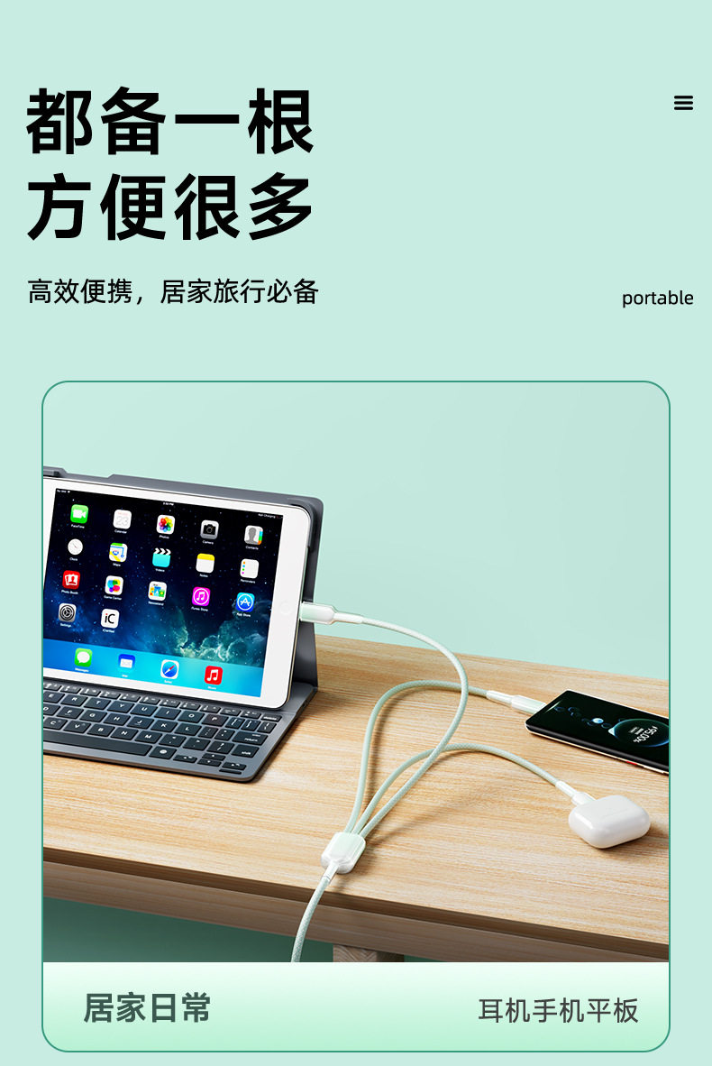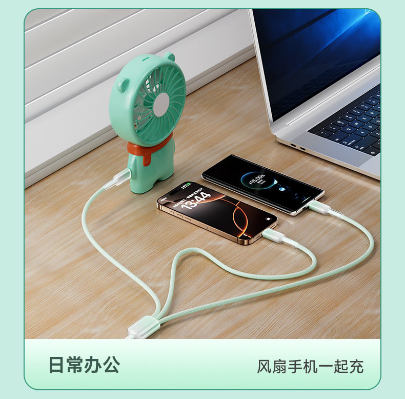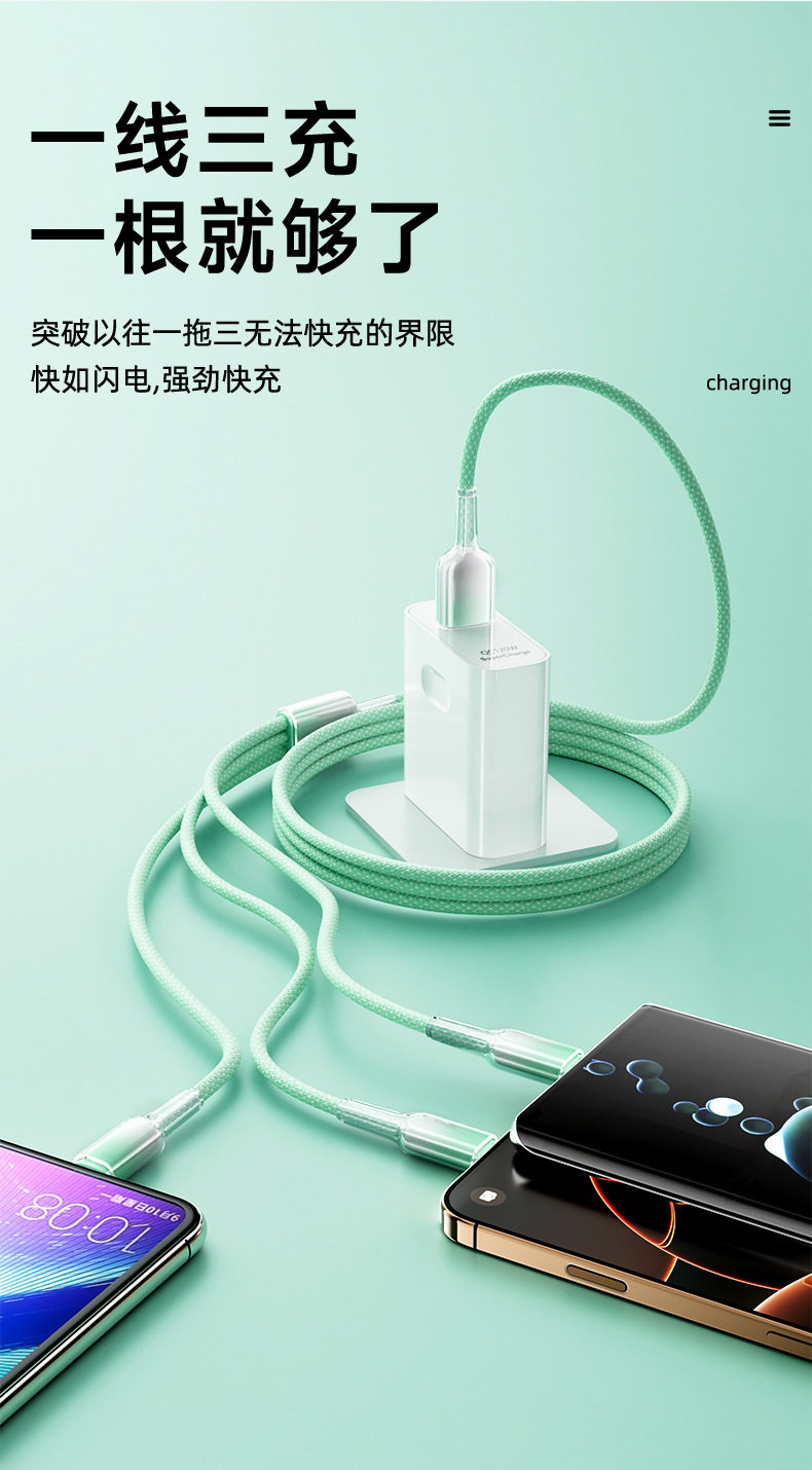 1.2 m one drag three [gradient ice crystal] data cable-green