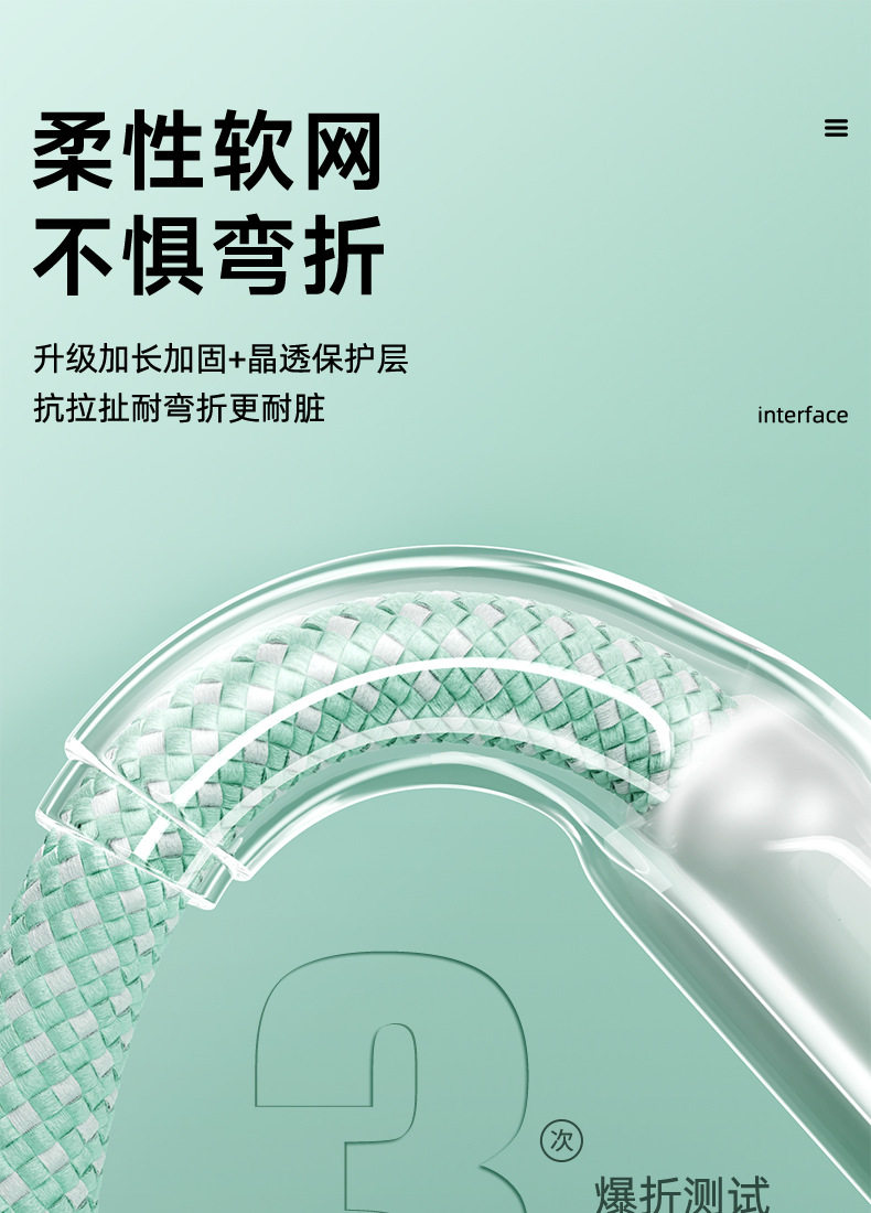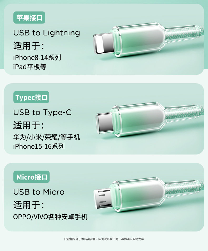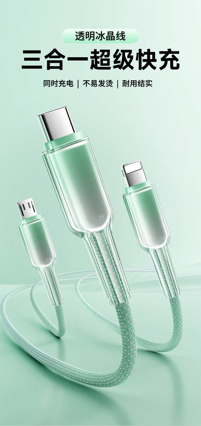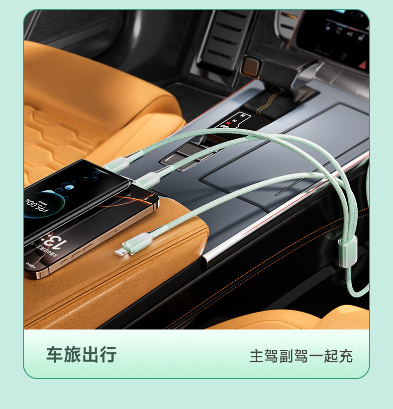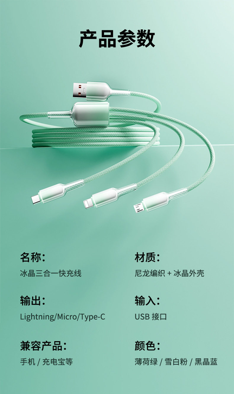 2 m one drag three [gradient ice crystal] data cable-green