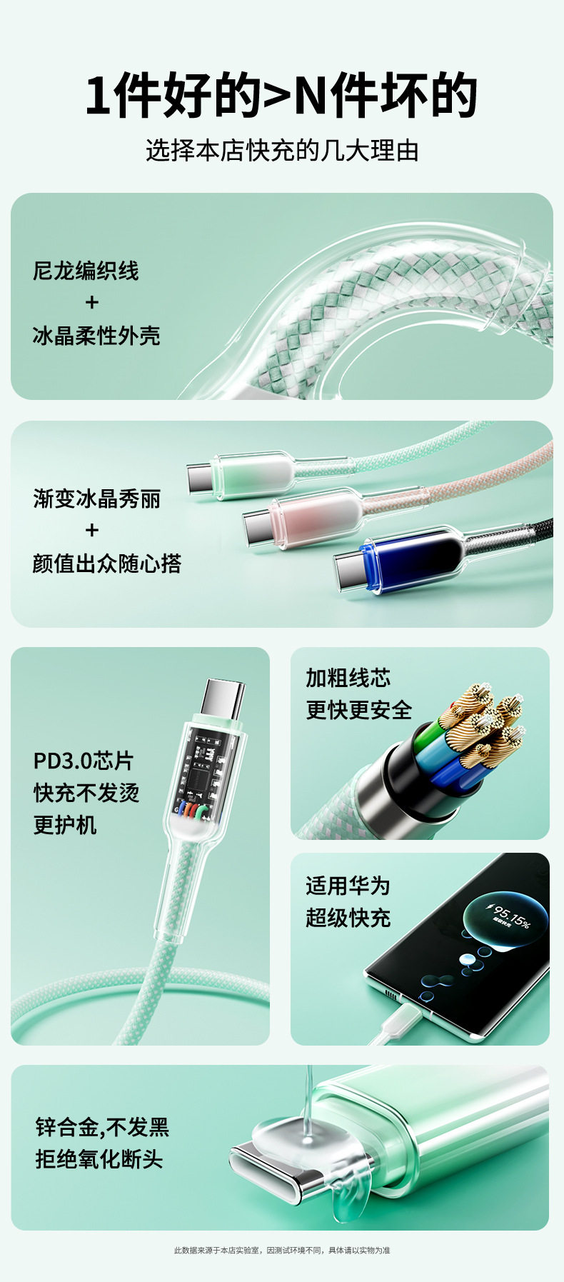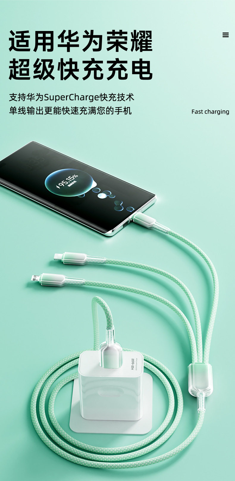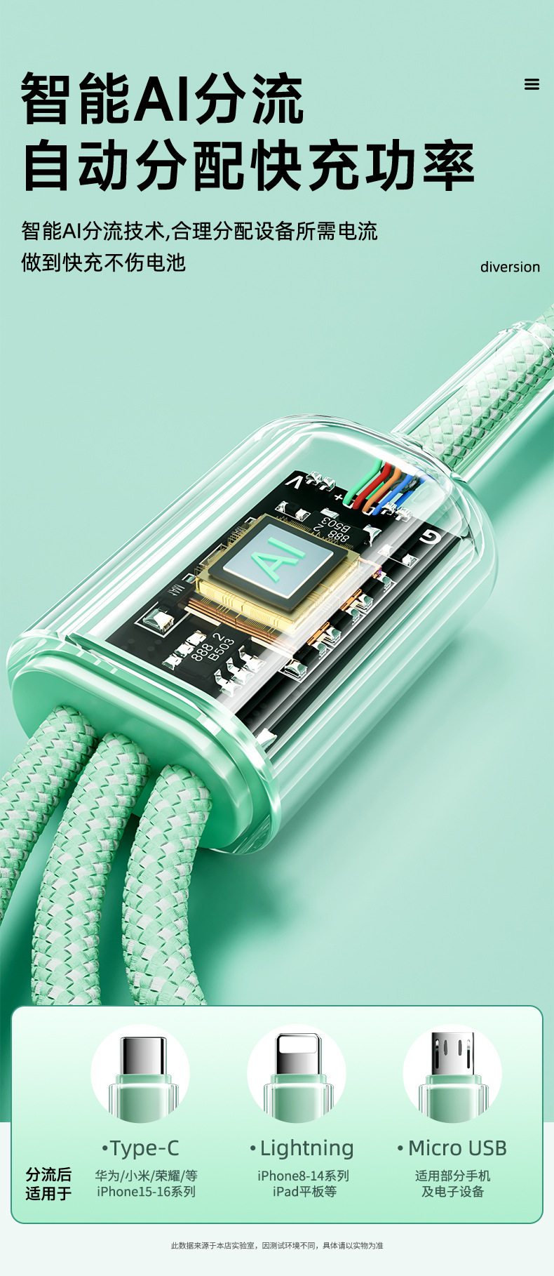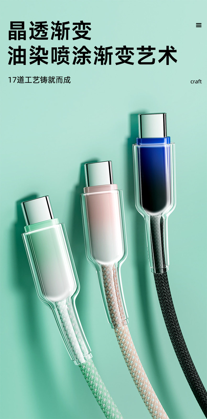 2 m one drag three [gradient ice crystal] data cable-green