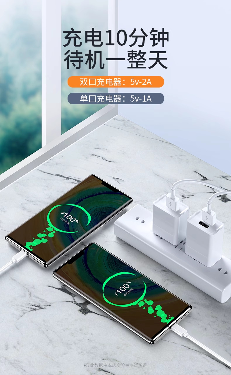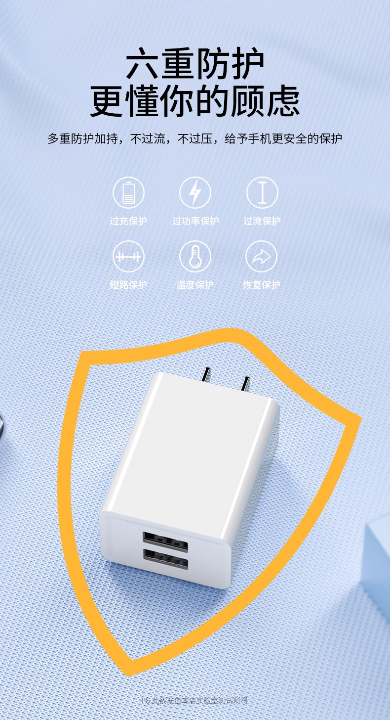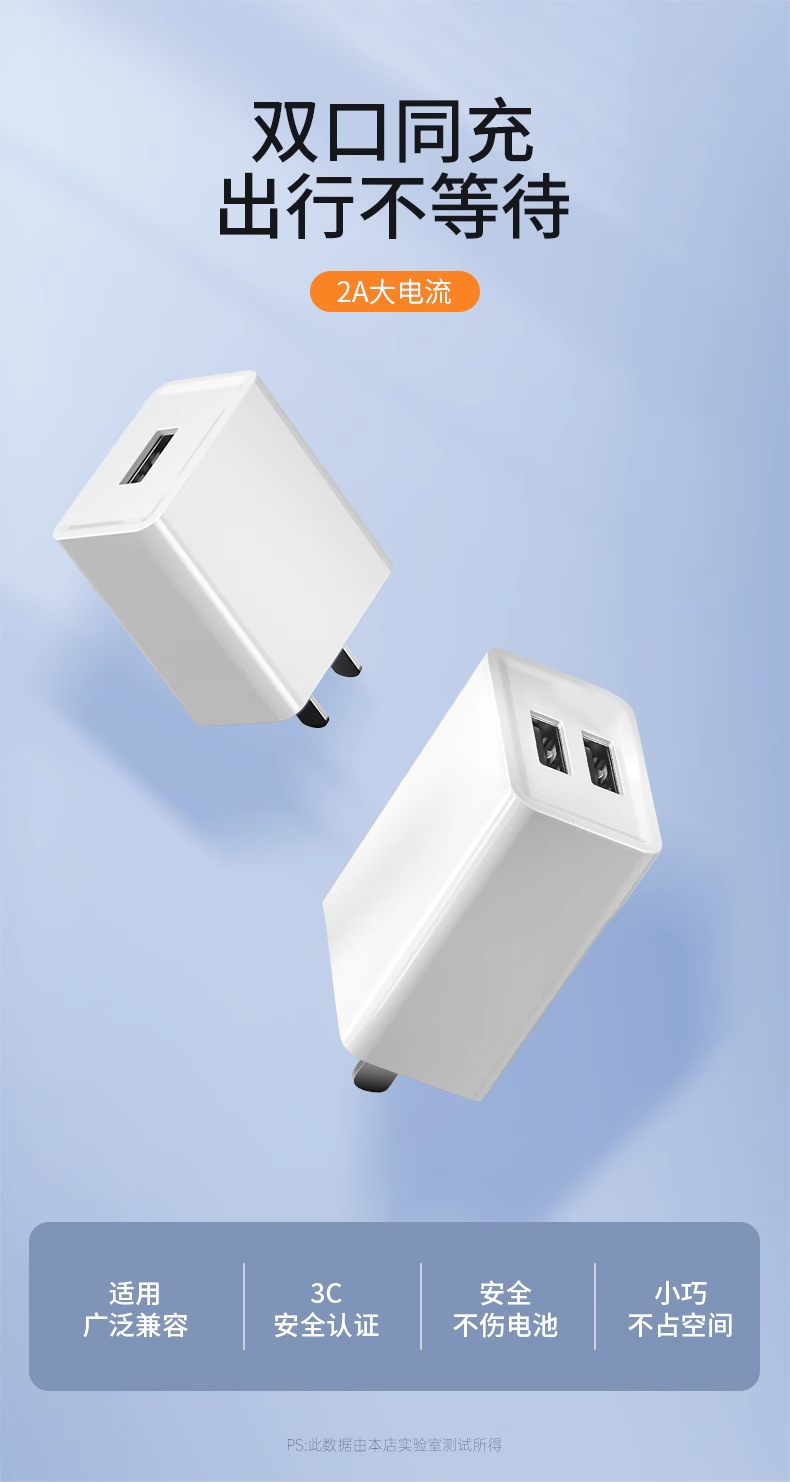 [3c certification] 2a dual-port charging plug