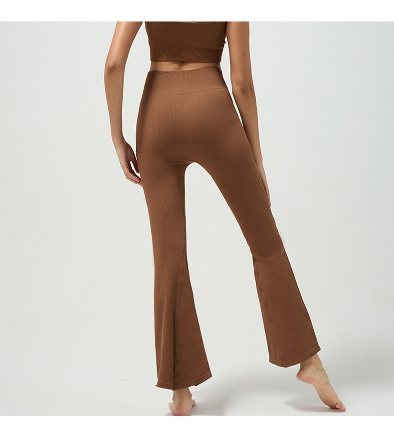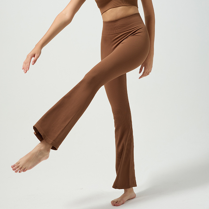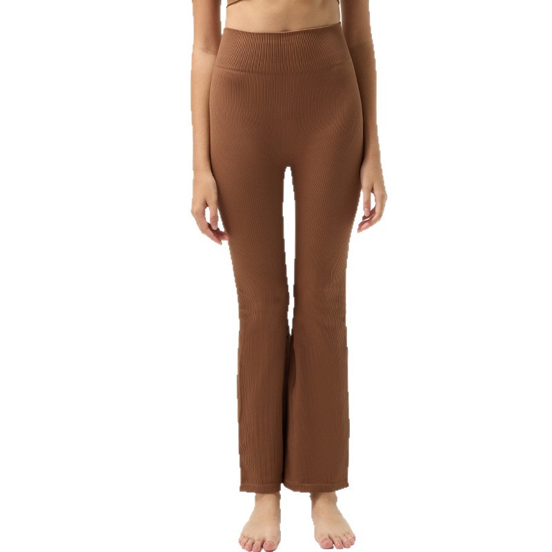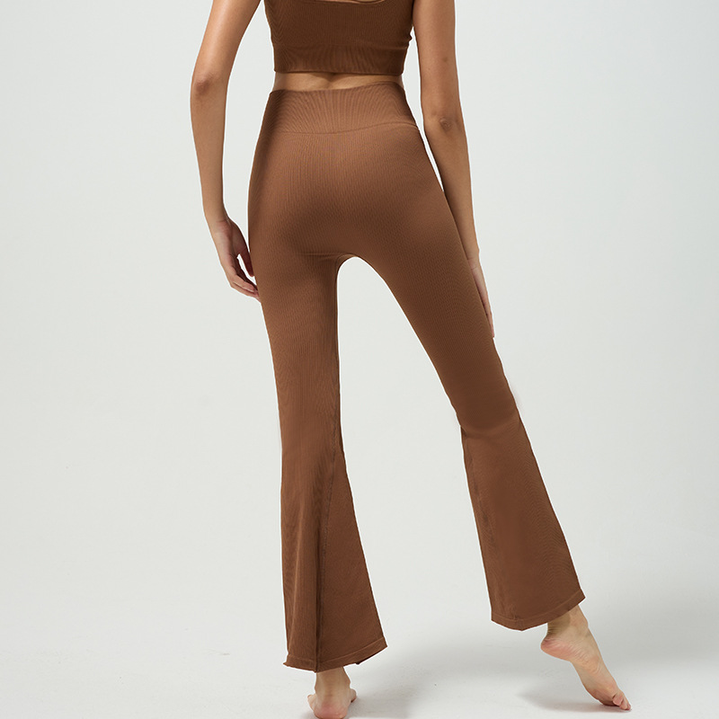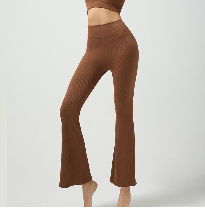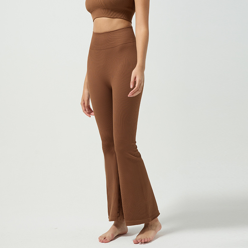 Cross-border refinement thread seamless knitted bell-shaped yoga pants with high-absorption and quick-drying, high-waist, naked feeling, wide-leg, fashion and fitness pants