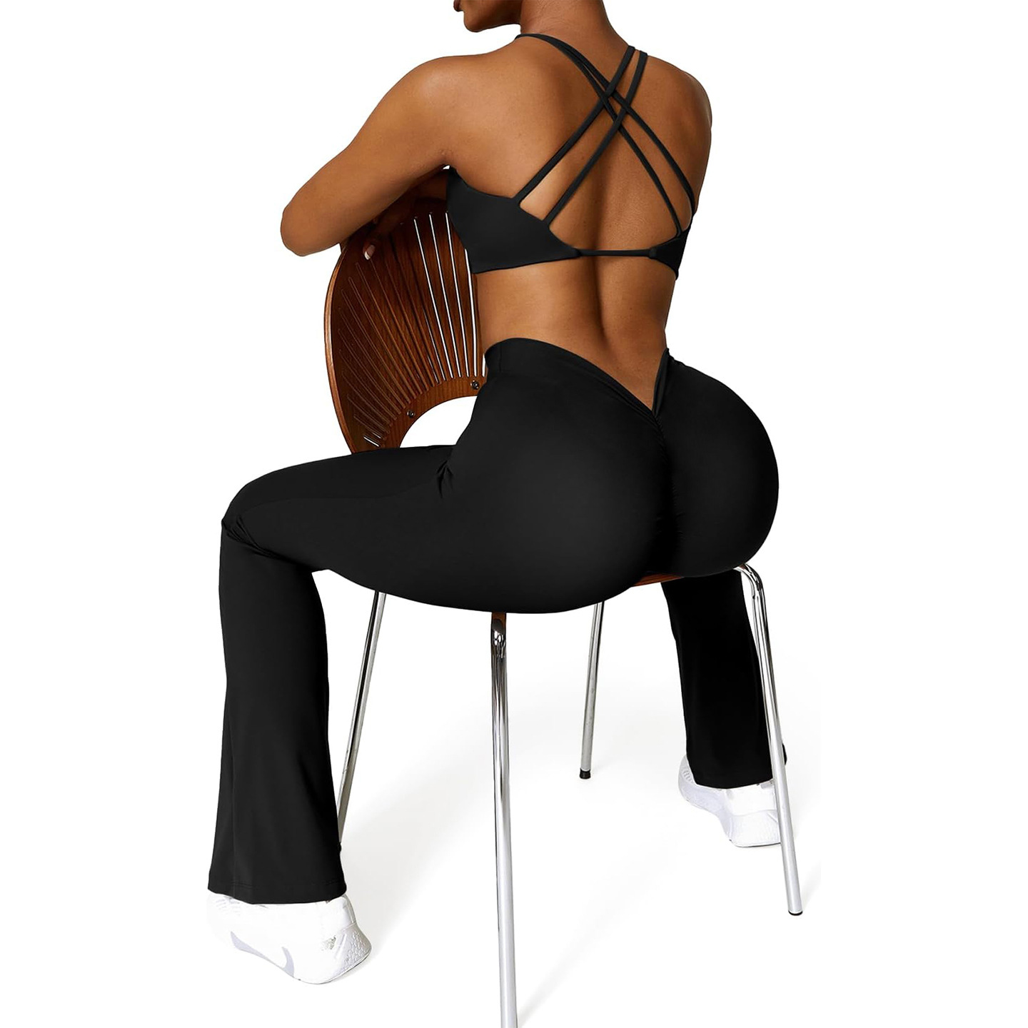 European and American invisible micro-flare pants for women with V-waist, abdominal contraction, buttock beauty, outdoor breathable yoga, sports and fitness wide-leg pants
