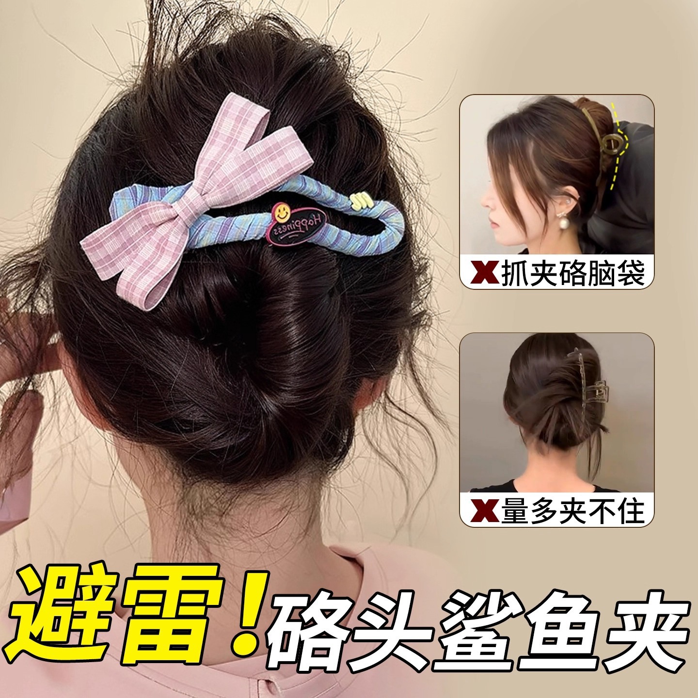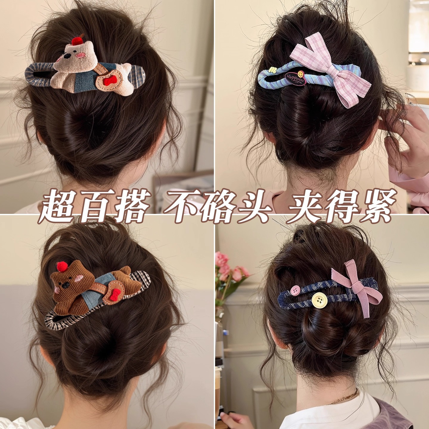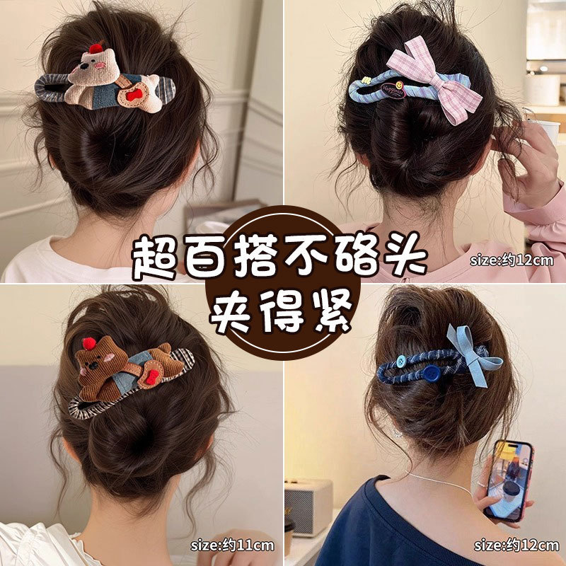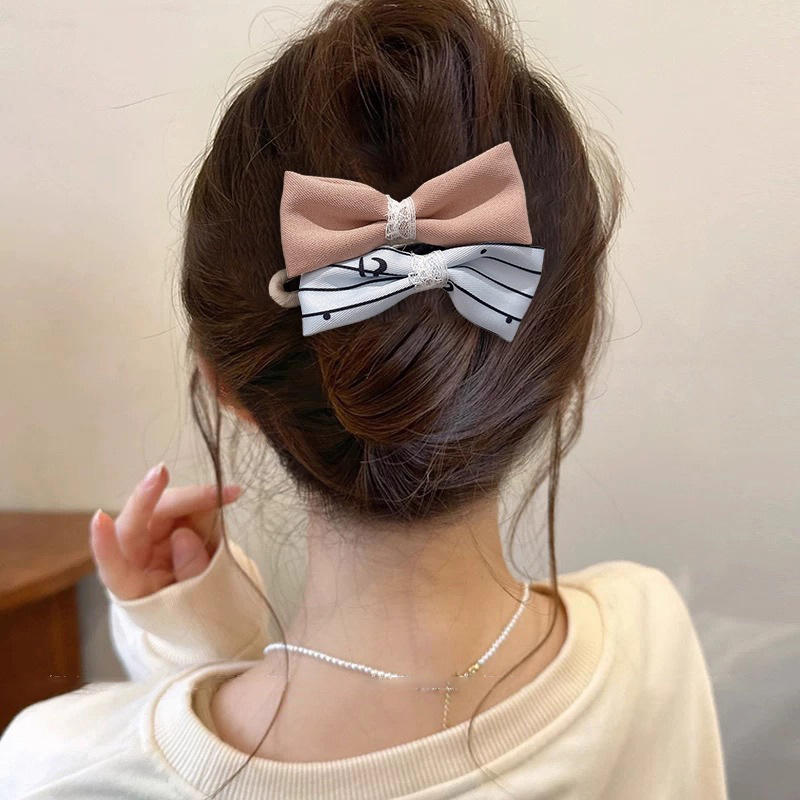 8# khaki + coffee double bow duckbill clip