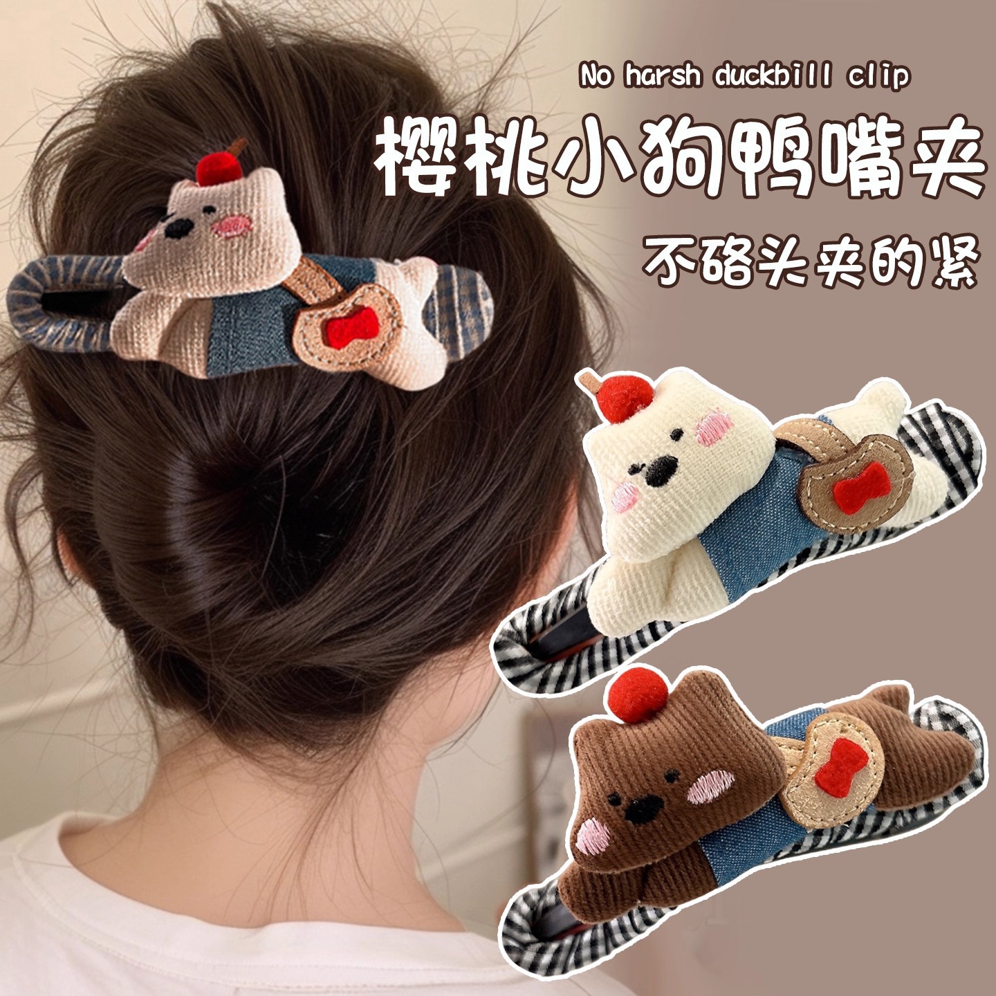 #3 cherry brown puppy duckbill clip