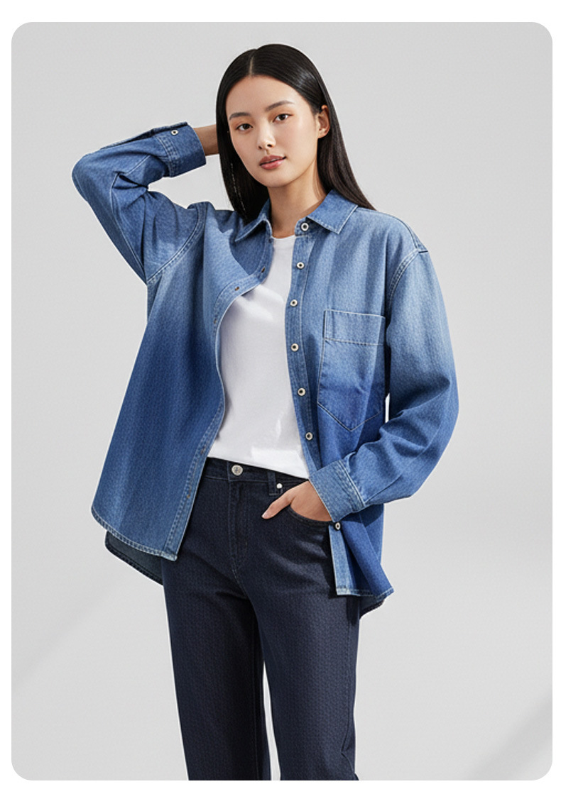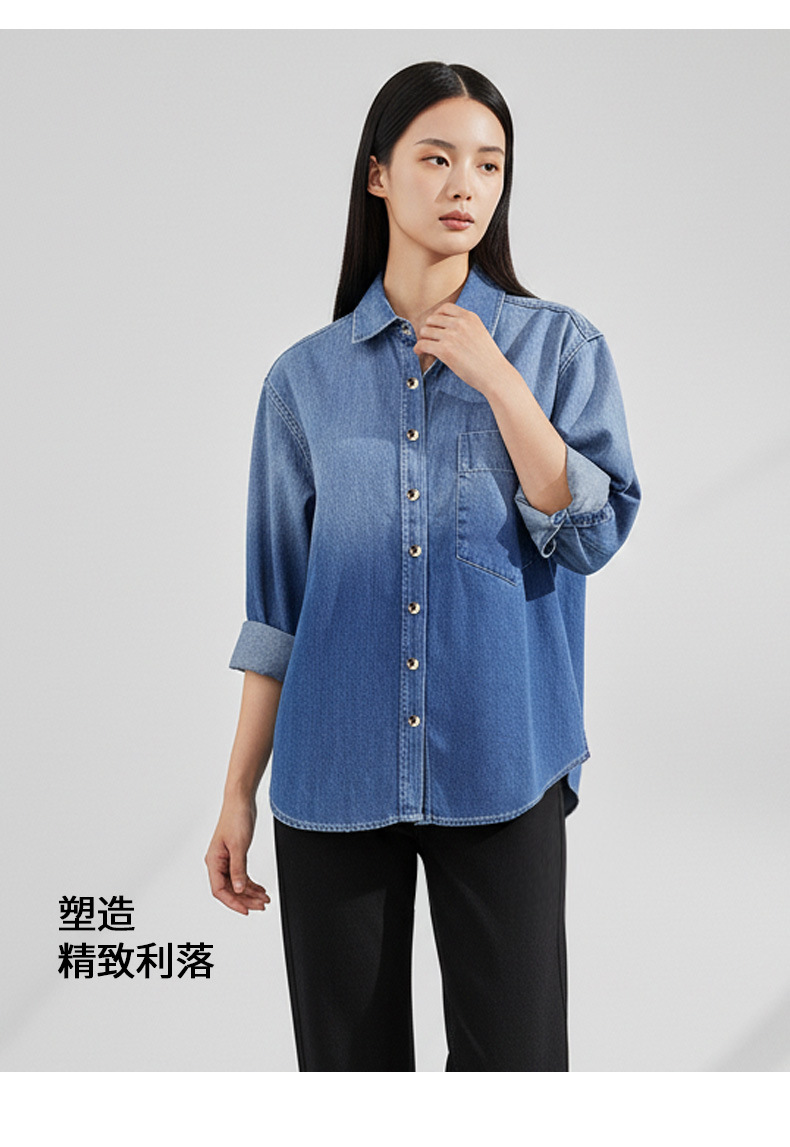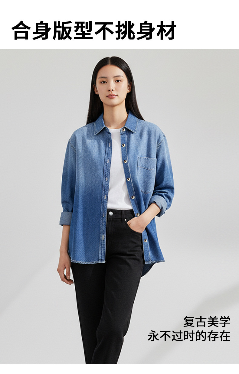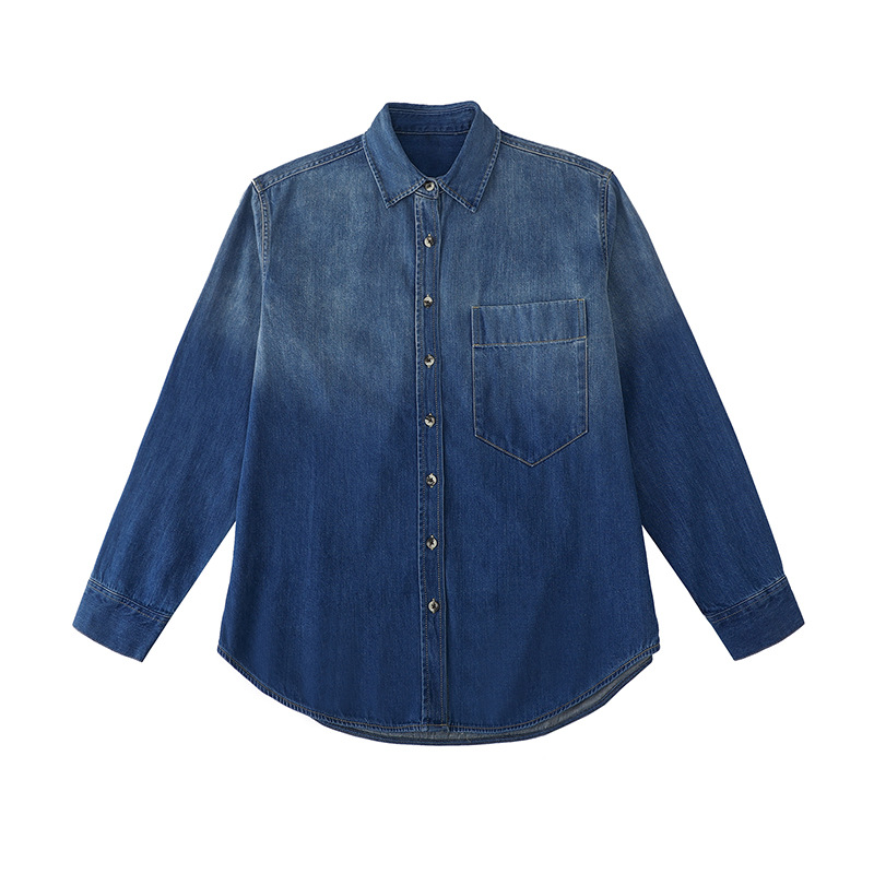 women's denim jacket spring new casual loose top slimming retro bandage dress french joker shirt long sleeve
