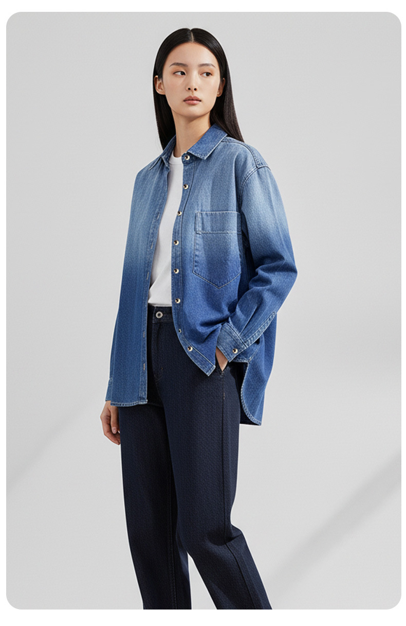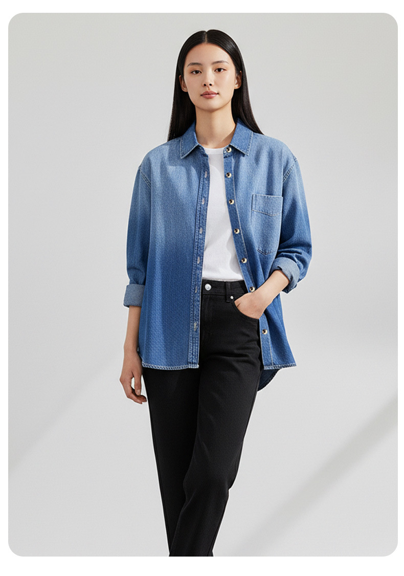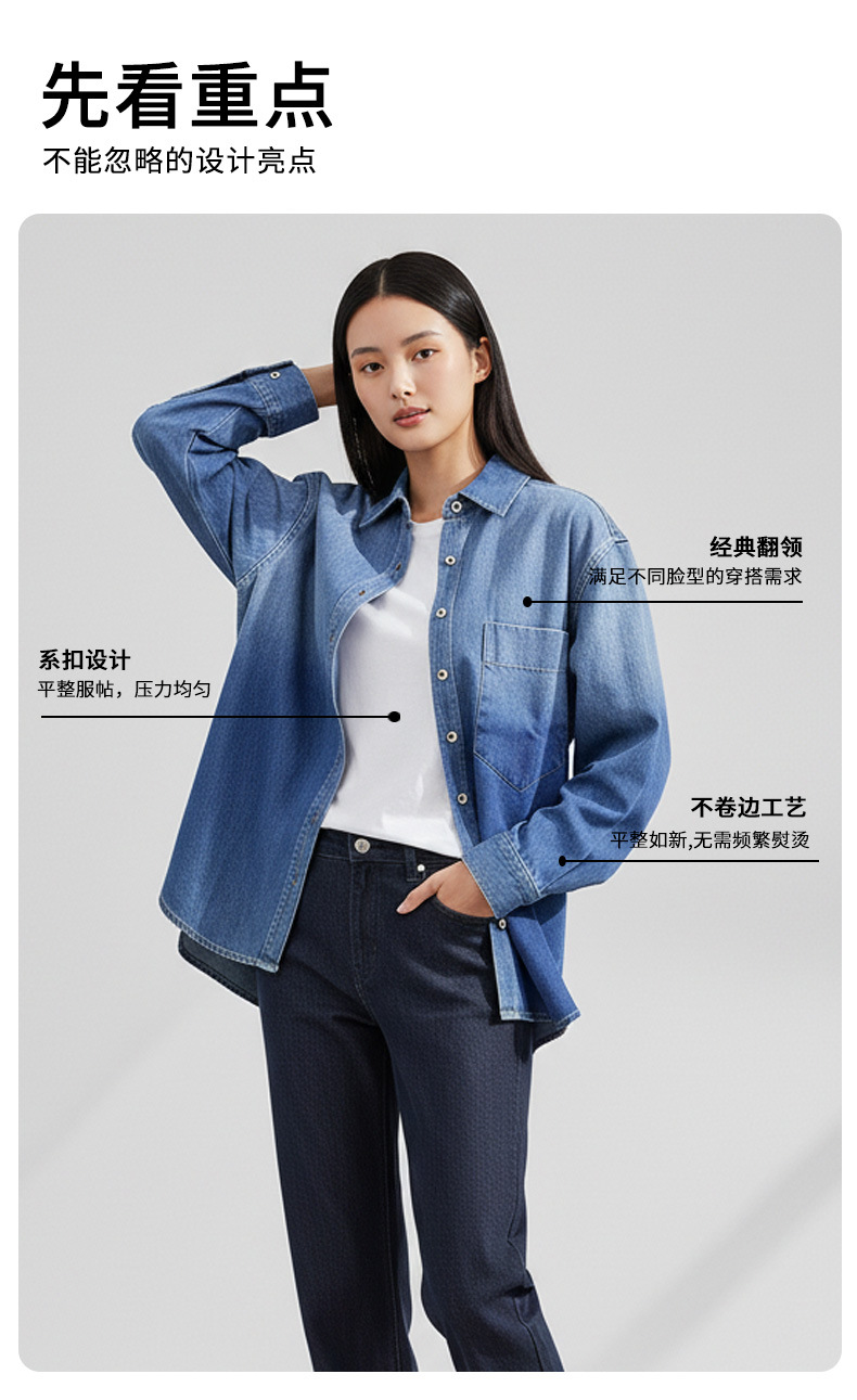 women's denim jacket spring new casual loose top slimming retro bandage dress french joker shirt long sleeve